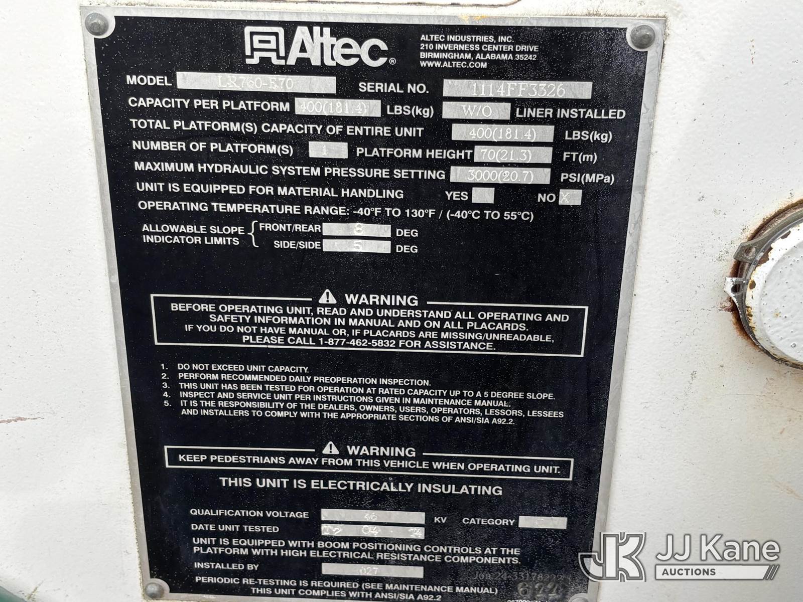 Altec LR760-E70, 75 ft, Over-Center Elevator Bucket Truck s/n 1114FF3326, with Single-Man Bucket, & 2 Outriggers, mounted behind cab on 2015 Ford F750 Chipper Dump Truck, Cummins 6.7L Diesel 4X2, 6-spd, A/C, with 11ft Body, (53,772 miles) (Runs Moves & Upper Operates) (Engine Light On, Service Engine Soon Light On, Check Engine Light On, Limp Mode, Shuts Down, Must Tow) This is a Titled Item NOTE: This unit is being sold AS IS/WHERE IS via Timed Auction and is located in Plymouth Meeting, PA. Inspection & preview days for this unit are the 2 business days prior to the first day of items closing for this auction, item is located at 1402 Conshohocken Rd Plymouth Meeting, PA 19462 and hours of operations are 8a-4p. For pre-sale questions, please contact Bruce Thomas @ (267) 887-0392 or bruce.thomas.jr@jjkane.com. (Missing manuals, See Auction Company for Manufacturers Information to obtain manuals) (Buyer is responsible for removal. Assistance by consignor or JJ Kane Auctions is not assured.)