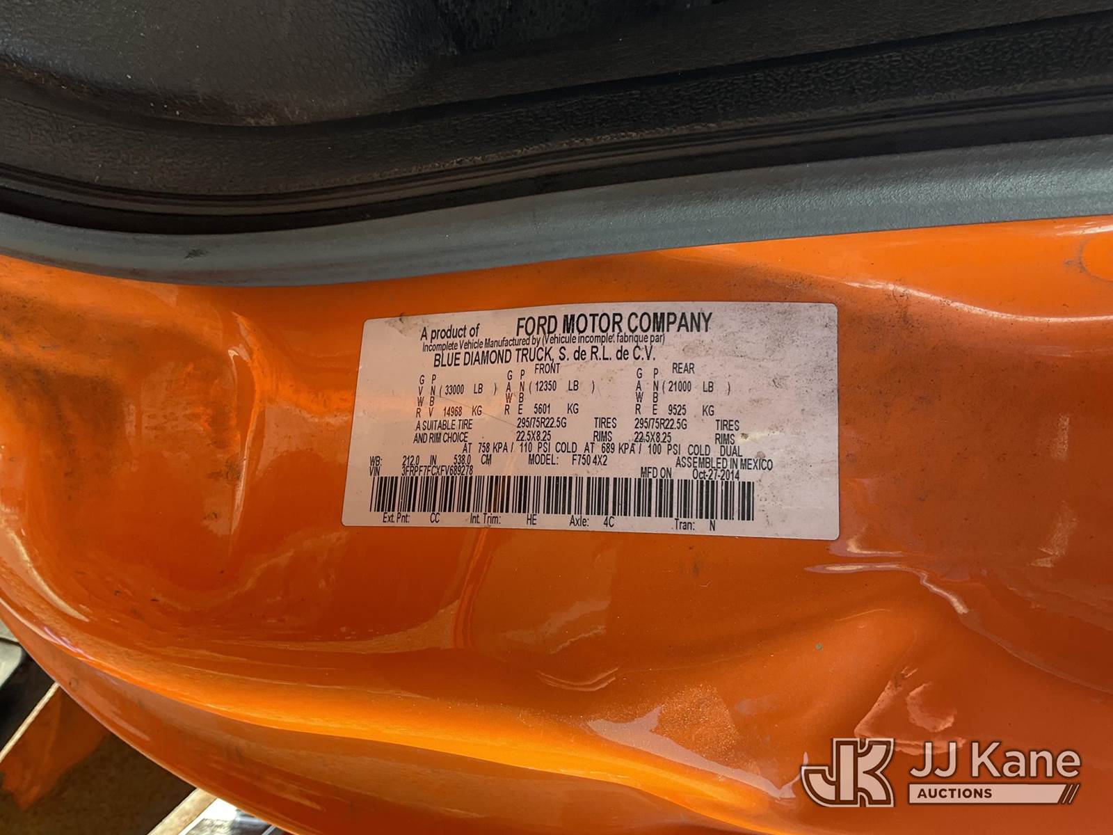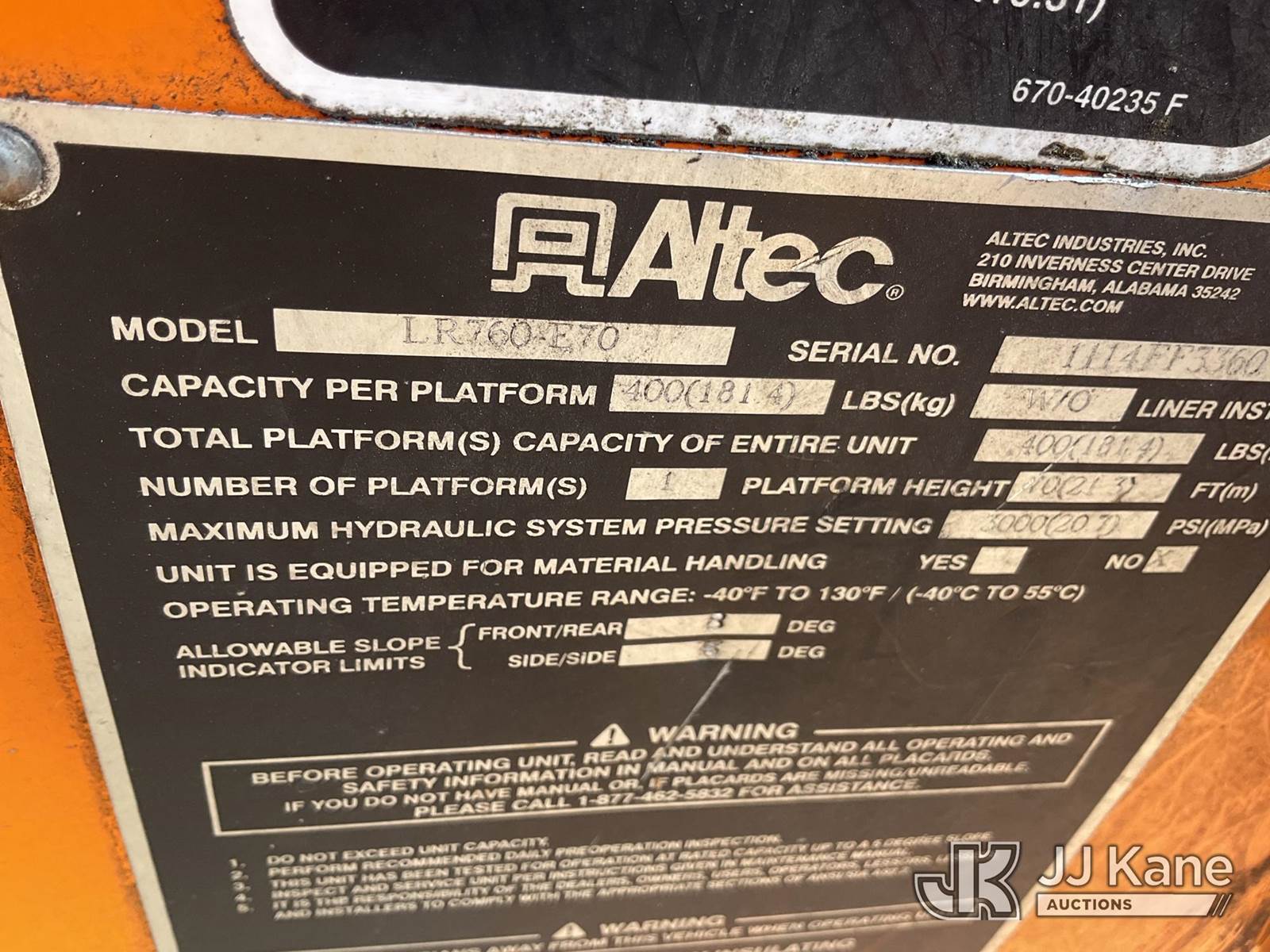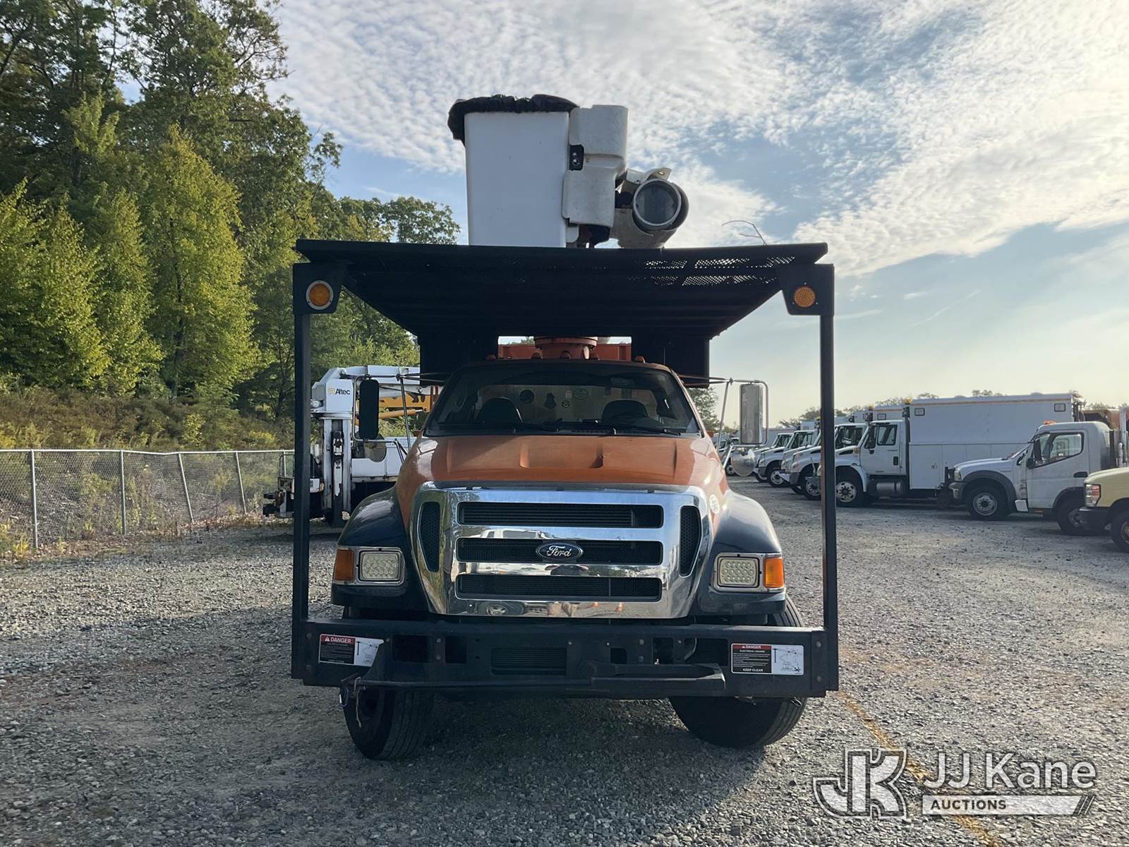 Altec LR760E70, 75 ft, Over-Center Elevator Bucket Truck s/n 1114FF3360, with single-man bucket & 2 hyd outriggers, mounted behind cab on 2015 Ford F-750 Chipper Dump Truck, Cummins 6.7L 6-spd, 4X2, diesel, (82,757 miles) (Runs & Moves) (Upper Condition Unknown, Bad/No Brakes, Check Engine, ABS & Brake Lights On, Seller States: Dump Hoist Cracked Around Dump Pin, Need Pto Pump, Needs Front Brakes, Gasket For Shift Tower, Abs Light On, Lower Boom Pin Fraying) This is a Titled Item NOTE: This unit is being sold AS IS/WHERE IS via Timed Auction and is located in Shrewsbury, MA. Inspection & preview days for this unit are the 2 business days prior to the first day of items closing for this auction, item is located at 11 Fortune Blvd Shrewsbury, MA 01545 and hours of operations are 8a-4p. For pre-sale questions, please contact Rob Gifford @ (508) 864-4126. (Manuals provided in cab) (Buyer is responsible for removal. Assistance by consignor or JJ Kane Auctioneers is not assured.)