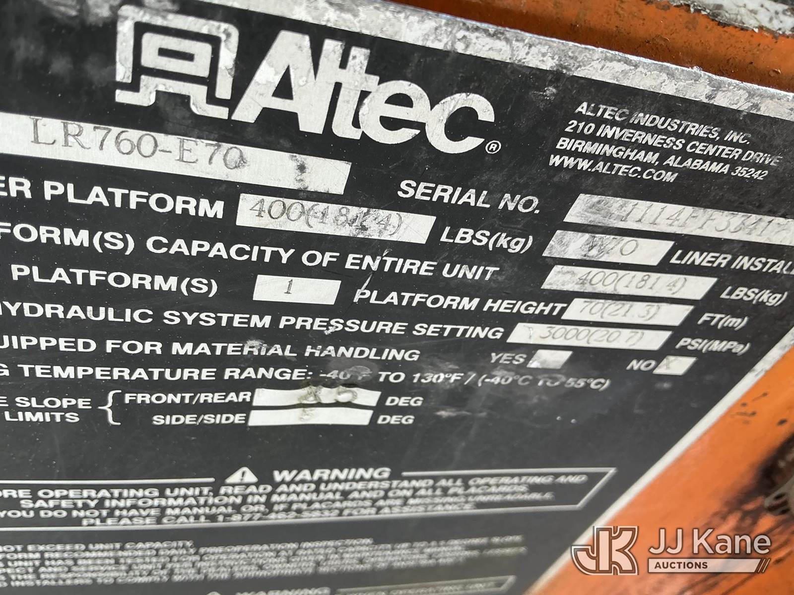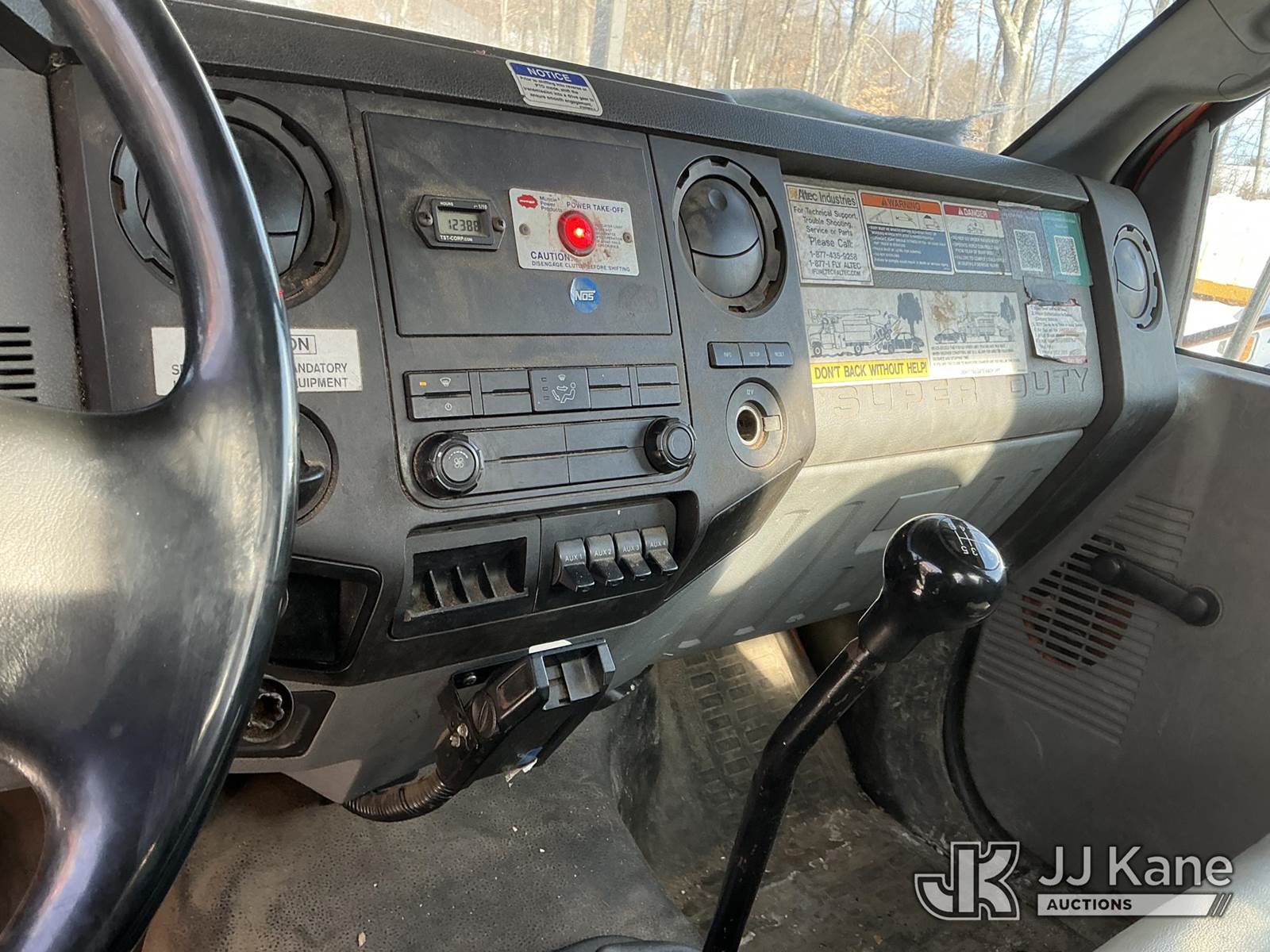 Altec LR760E70, 75 ft, Over-Center Elevator Bucket Truck s/n 1114FF3341, with single-man bucket & 2 hyd outriggers, mounted behind cab on 2015 Ford F-750 Chipper Dump Truck, Cummins 6.7L 4X2, diesel, 6-spd, (76,063 miles) (Runs & Upper Operates) (Does Not Move, Transmission Issues, Does Not Shift Into Gear, Drivetrain Condition Unknown, Check Engine Lights On, Seller States: Needs EGR Cooler & Rear Brakes) This is a Titled Item NOTE: This unit is being sold AS IS/WHERE IS via Timed Auction and is located in Shrewsbury, MA. Inspection & preview days for this unit are the 2 business days prior to the first day of items closing for this auction, item is located at 11 Fortune Blvd Shrewsbury, MA 01545 and hours of operations are 8a-4p. For pre-sale questions, please contact Rob Gifford @ (508) 864-4126. (Manuals provided in cab) (Buyer is responsible for removal. Assistance by consignor or JJ Kane Auctions is not assured.)