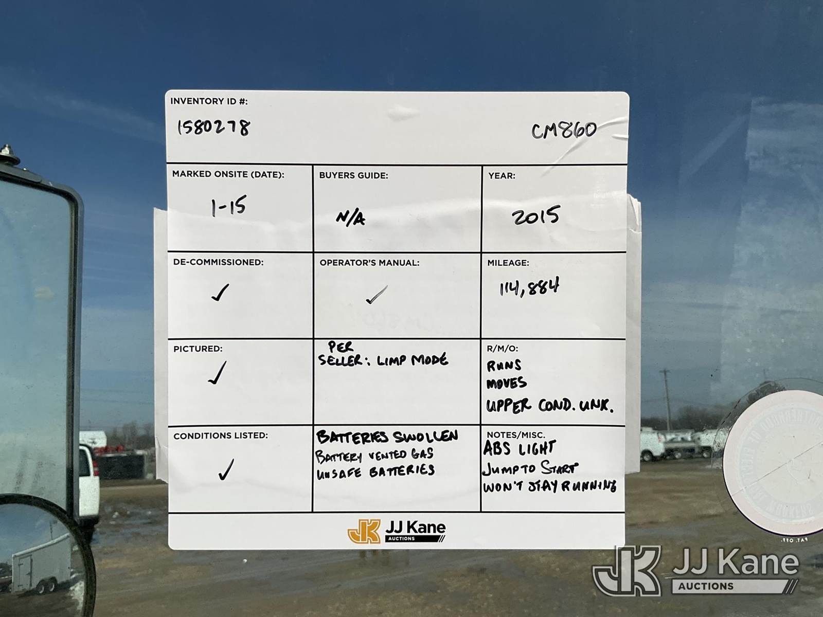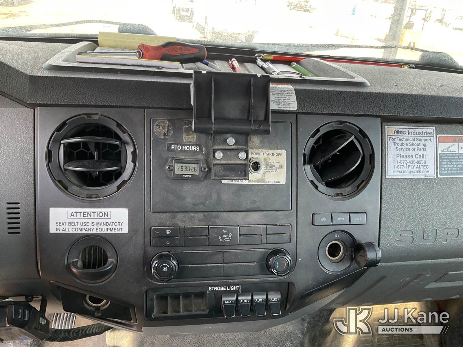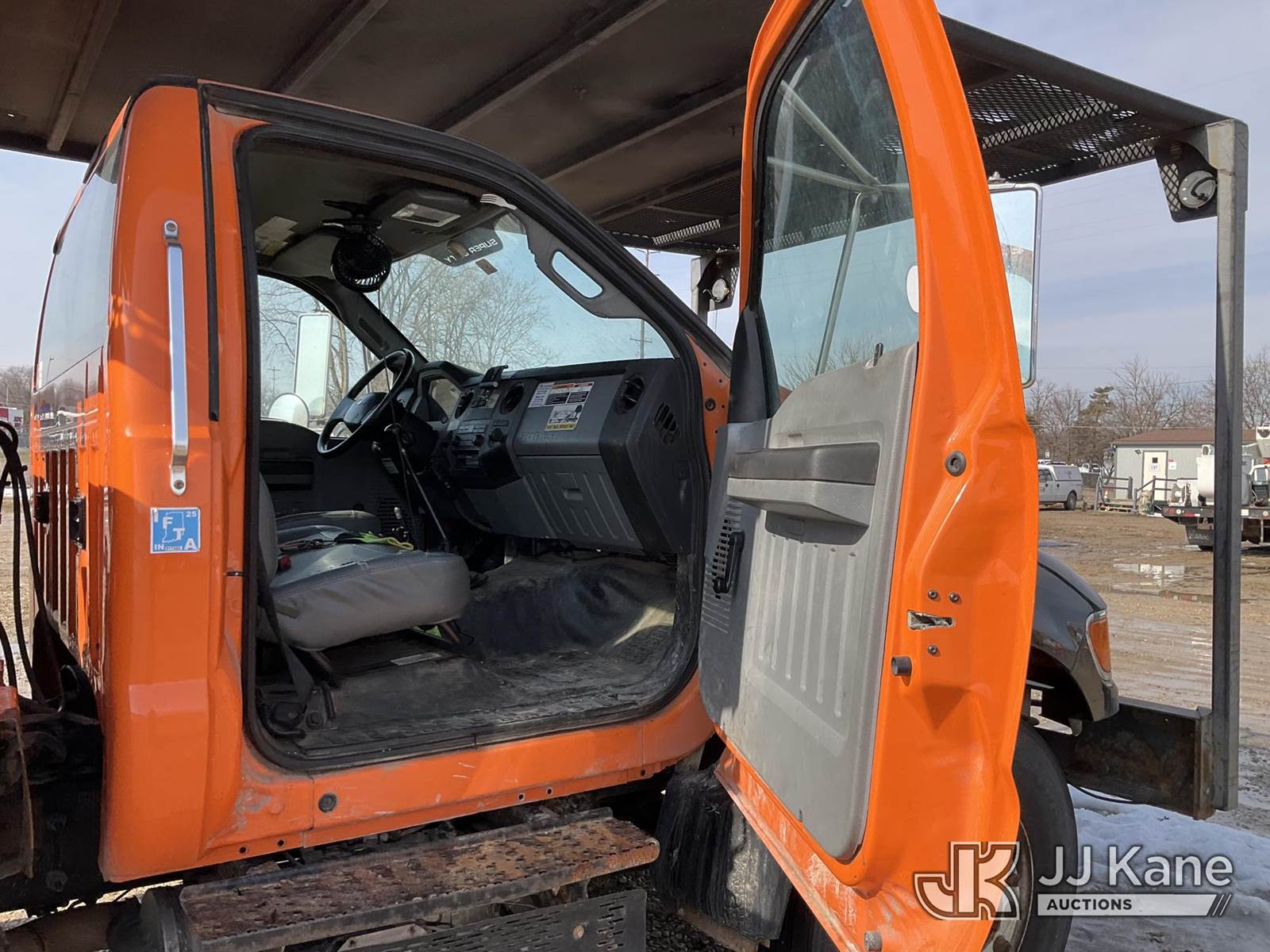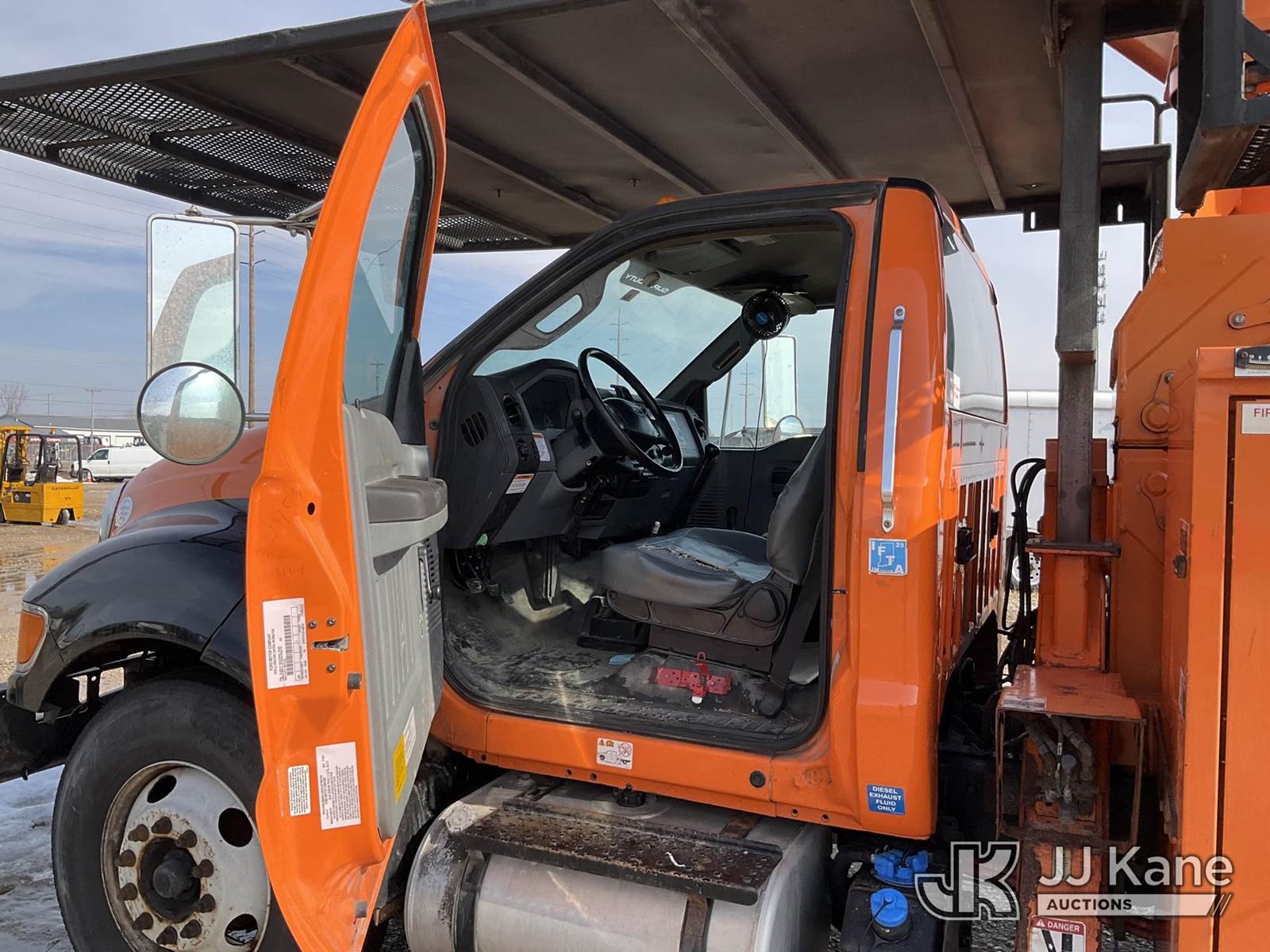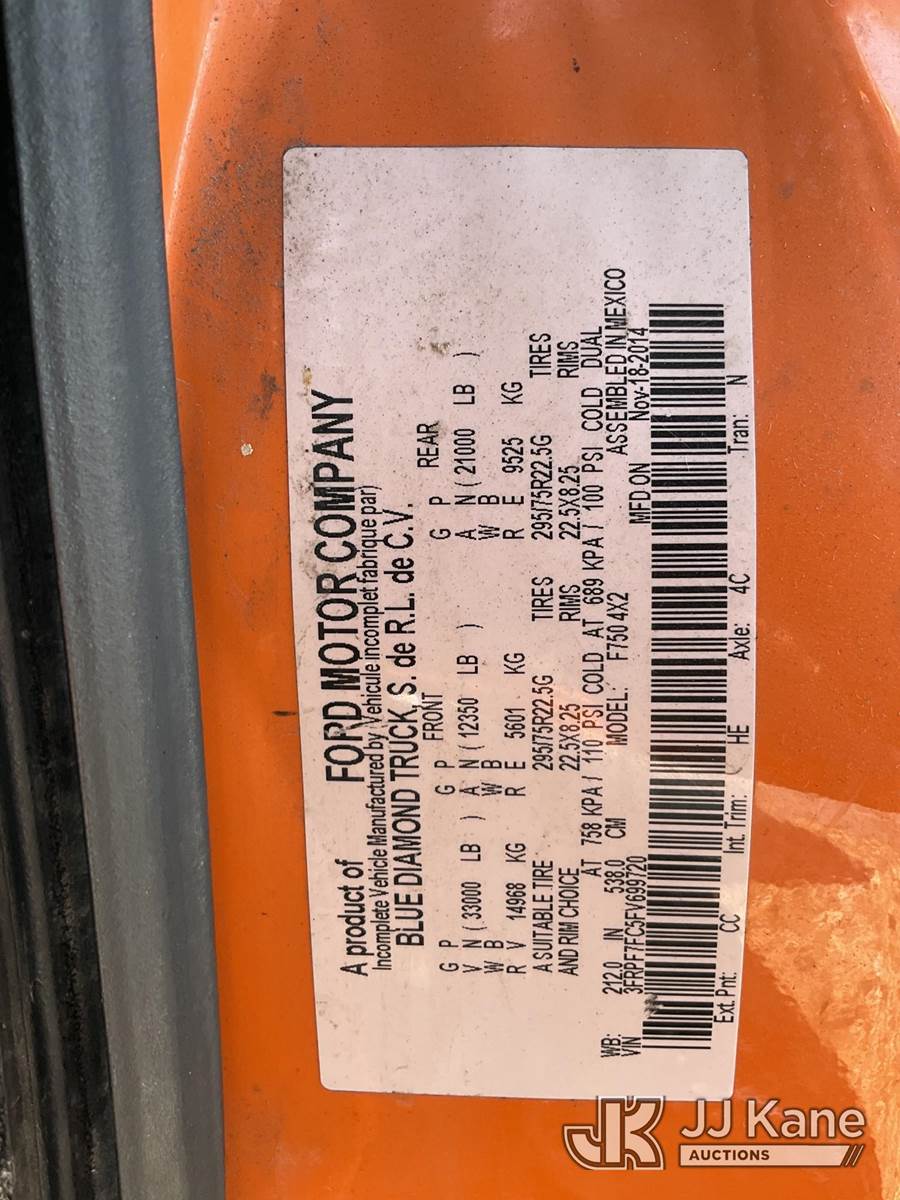 Altec LR760E70, 75 ft, Over-Center Elevator Bucket Truck s/n 0915FF4287, with single man bucket, two hydraulic outriggers, mounted behind cab on 2015 Ford F-750 Regular Cab 2WD DRW Chipper Dump Truck, 6.7L L6 DIESEL 6-spd, (114,884 miles) (Runs & Moves) (Truck Will Not Stay Running, Upper Condition Unknown, Jump to Start, Swollen Batteries, Battery Began Venting Gas During Auction Inspection, Truck Unsafe To Start With Bad Batteries, ABS Light) (Seller States: Unit In Limp Mode, Won't Stay Running) This is a Titled Item NOTE: This unit is being sold AS IS/WHERE IS via Timed Auction and is located in Charlotte, MI. Inspection & preview days for this unit are the 2 business days prior to the first day of items closing for this auction, item is located at 750 Island Hwy Charlotte, MI 48813 and hours of operations are 8a-4p. For pre-sale questions, please contact Corey Cook at (517) 983-0796 or corey.cook@jjkane.com (Manuals provided in cab) (Buyer is responsible for removal. Assistance by consignor or JJ Kane Auctions is not assured.)