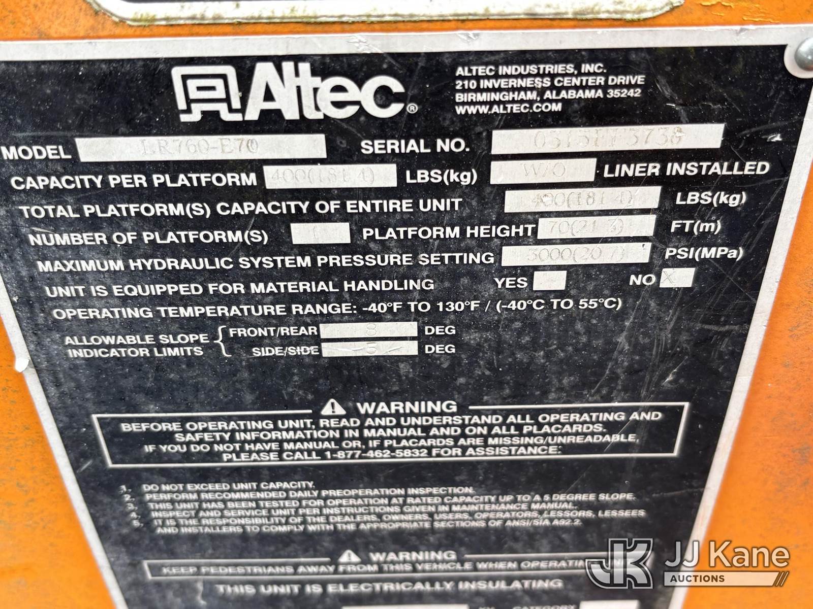 Altec LR760E70, 75 ft, Over-Center Elevator Bucket Truck s/n 0315FF3738, with single-man bucket & 2 outriggers, mounted behind cab on 2015 Ford F750 Chipper Dump Truck, 6.7L diesel, 6-spd, with 11ft Body, (87,932 miles) (Runs, Doesn’t Move & Upper Condition Unknown, Seller States; Needs Clutch & Exhaust Replaced, Does Not Have Second Gear, Check Engine Light On, Wrench Light On, Must Tow) This is a Titled Item NOTE: This unit is being sold AS IS/WHERE IS via Timed Auction and is located in Plymouth Meeting, PA. Inspection & preview days for this unit are the 2 business days prior to the first day of items closing for this auction, item is located at 1402 Conshohocken Rd Plymouth Meeting, PA 19462 and hours of operations are 8a-4p. For pre-sale questions, please contact Bruce Thomas @ (267) 887-0392 or bruce.thomas.jr@jjkane.com. (Manuals provided in cab) (Buyer is responsible for removal. Assistance by consignor or JJ Kane Auctions is not assured.)