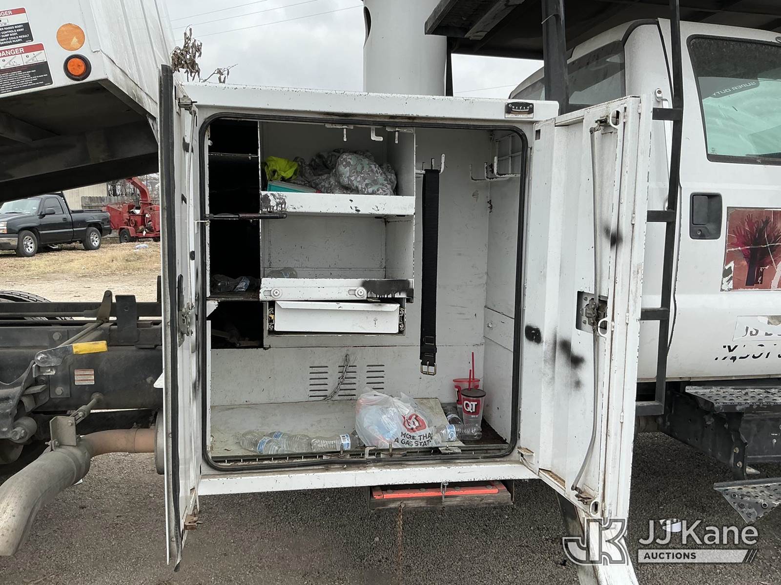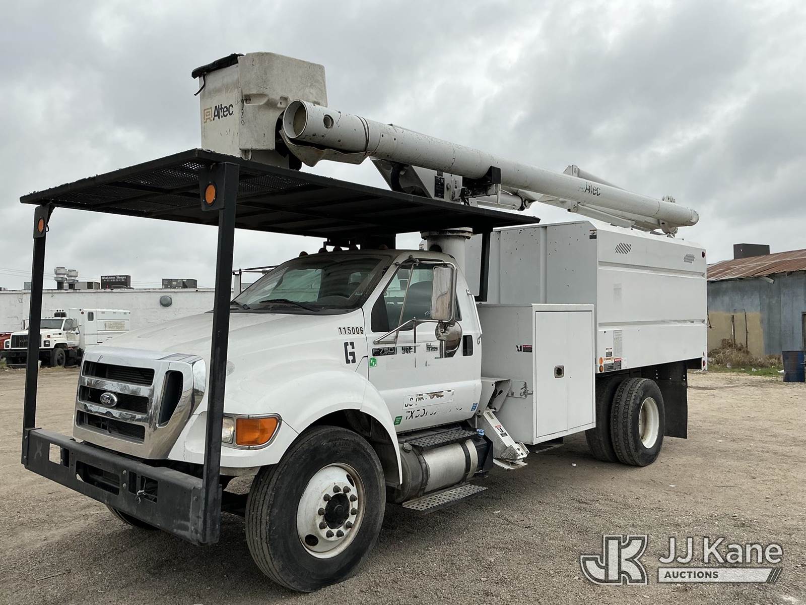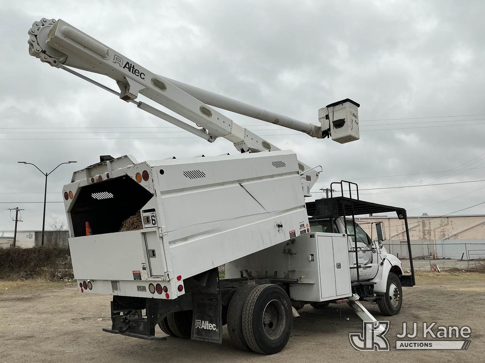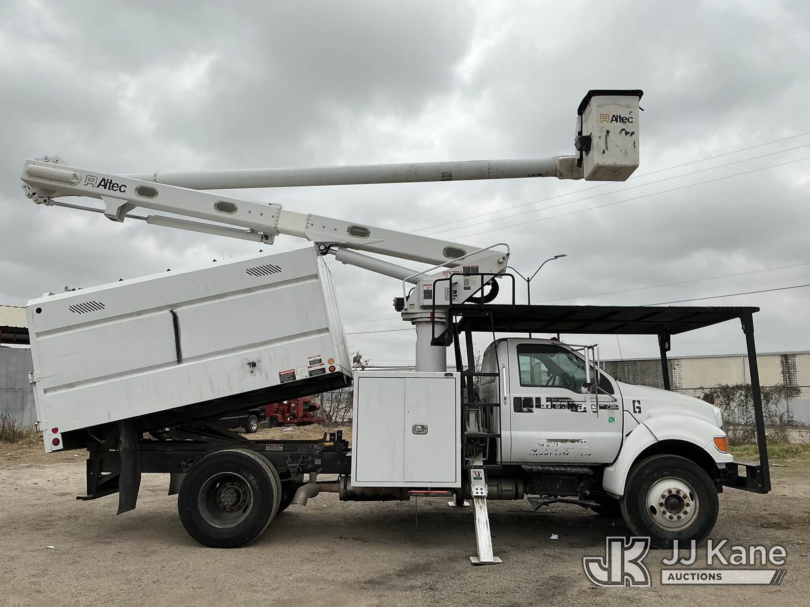 Altec LRV-56, 61 ft, Over-Center Bucket Truck s/n 0316FF4806, with Single-Man Bucket, mounted on 2015 Ford F-750 Chipper Dump Truck, 6.7L L6 DIESEL 4x2, manual, A/C, (102,035 miles) (Runs, Moves, Dump and Bucket Operational) (Engine Light And Service Light On) This is a Titled Item NOTE: This unit is being sold AS IS/WHERE IS via Timed Auction and is located in San Antonio, TX. For more information & removal arrangements please contact Charles De Kanter @ (281) 910-7147. (Missing manuals, See Auction Company for Manufacturers Information to obtain manuals) (Buyer is responsible for removal. Assistance by consignor or JJ Kane Auctions is not assured.)