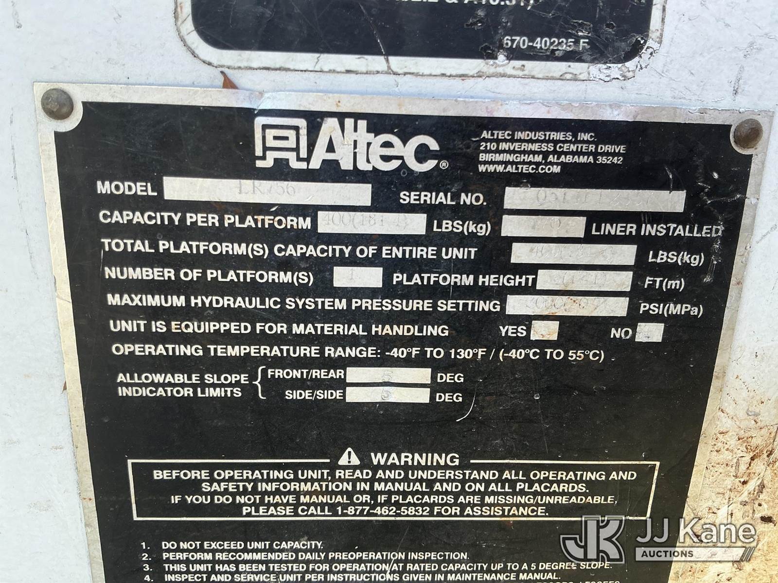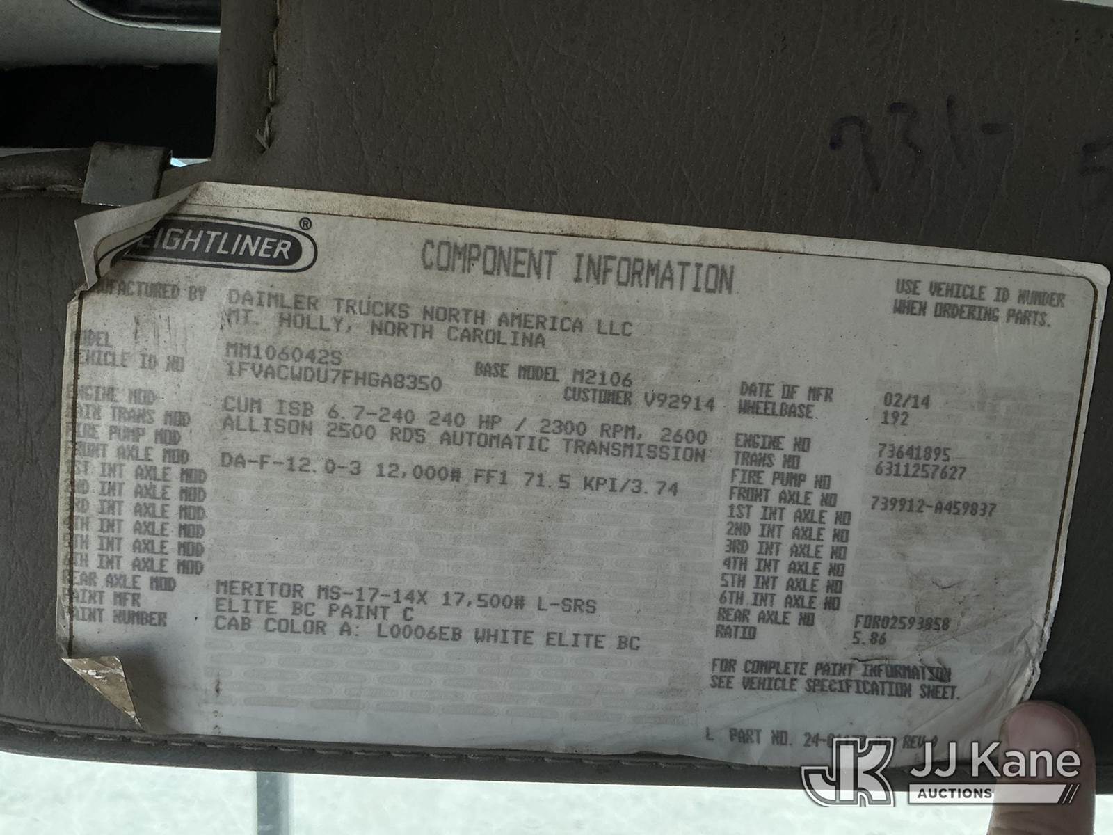 Altec LRV-56, 61 ft, Over-Center Bucket Truck s/n 0514FF2337, with single-man bucket, mounted behind cab on 2015 Freightliner M2 106 Chipper Dump Truck, Cummins ISB-240 6.7L diesel, Auto, A/C, (74,434 miles) (Runs, Moves & Upper Operates) (Check Engine Lights On) This is a Titled Item NOTE: This unit is being sold AS IS/WHERE IS via Timed Auction and is located in China Grove, NC. Inspection & preview days for this unit are the 2 business days prior to the first day of items closing for this auction, item is located at 820 E NC Hwy 152 China Grove, NC 28023 and hours of operations are 8a-4p. For pre-sale questions, please contact Office Staff @ (704) 674-1113. (Manuals provided in cab) (Buyer is responsible for removal. Assistance by consignor or JJ Kane Auctions is not assured.)