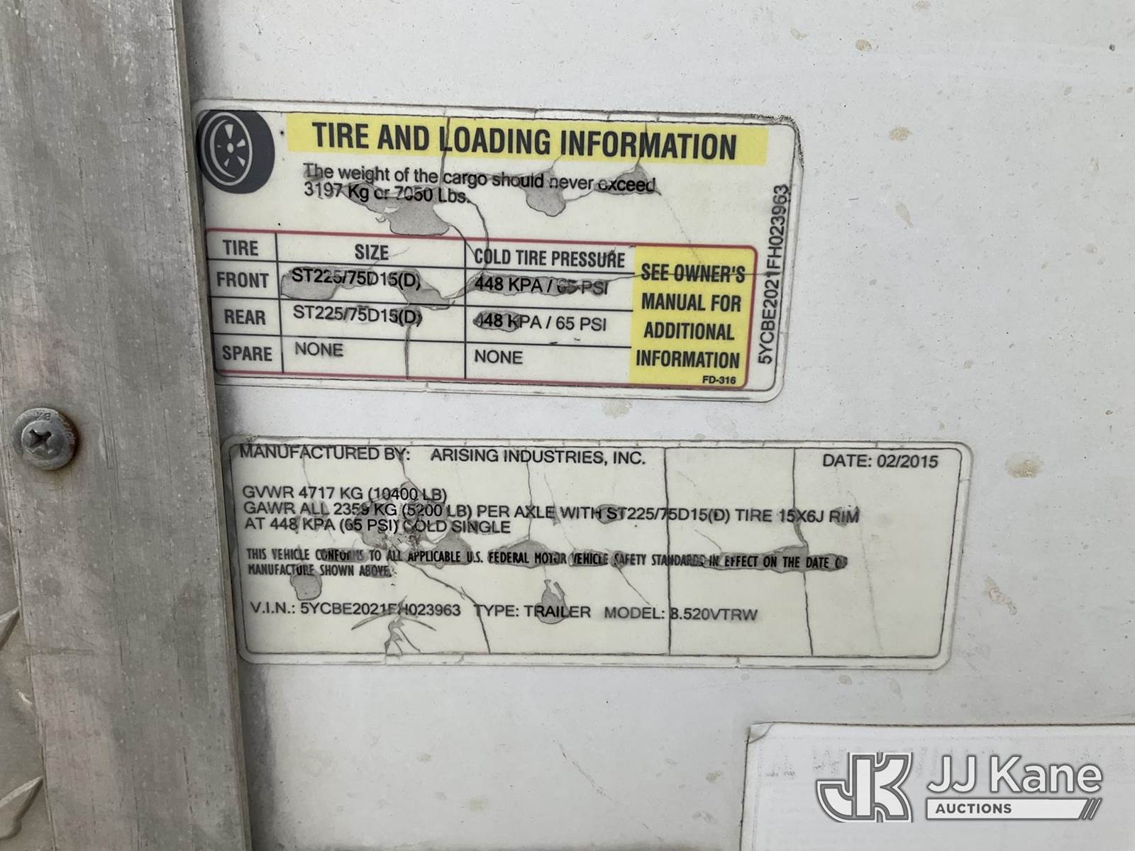 2015 Arising Industries T/A Enclosed Cargo Trailer, (Driver Side, Rear Panel Dented, Rear Door Decking Damaged) This is a Titled Item NOTE: This unit is being sold AS IS/WHERE IS via Timed Auction and is located in Robert, LA. Inspection & preview days for this unit are by appointment only; please contact us at contact@jjkane.com or 84-Go-JJKane for more details. License # LA AB-154 (Buyer is responsible for removal. Assistance by consignor or JJ Kane Auctions is not assured.)