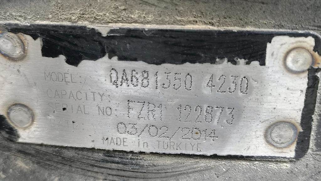 Axle Alliance Rear Axle Housing, RT40-4N, w/ Torque Rod Bracket, 10 Hole Pilot, Air Drum Brakes, 53.5" Inner Flange To Inner Flange, STD Track, 16 Hole Flange. P/N QA6813504230. Removed from 2015 FAS II Airliner Suspension, HOUSING ONLY, DIFF SOLD SEPERATELY.