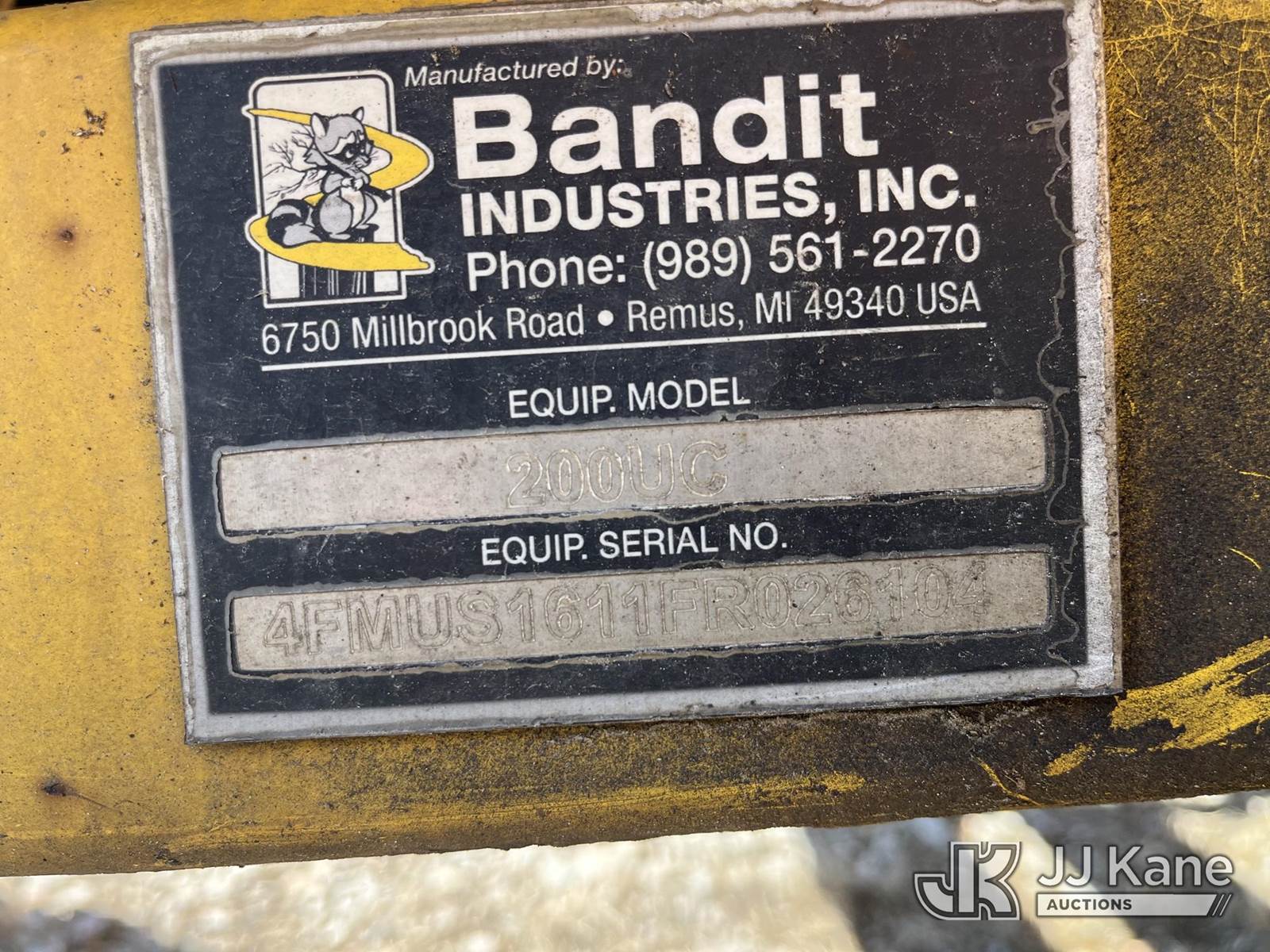 2015 Bandit 200UC Portable Chipper, s/n 4FMUS1611FR026104, 3-cyl Diesel, (No Title) (Runs, Operational Condition Unknown, Smokes Until Warm, No Jack) (Reads 2,248 hours) NOTE: This unit is being sold AS IS/WHERE IS via Timed Auction and is located in Smock, PA. Inspection & preview days for this unit are the 2 business days prior to the first day of items closing for this auction, item is located at 1000 Franklin Dr Smock, PA 15480 and hours of operations are 7:00 am to 3:30 pm. For pre-sale questions, please contact Alaina White @ (724) 562-2575 or Alaina.White@JJKane.com. (Buyer is responsible for removal. Assistance by consignor or JJ Kane Auctions is not assured.)