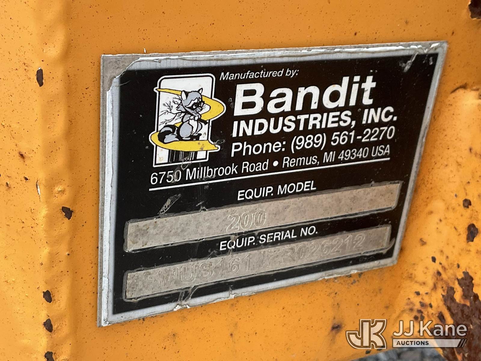 2015 Bandit 200+XP Chipper (12in Disc), gas, (Not Running, Condition Unknown) This is a Titled Item NOTE: This unit is being sold AS IS/WHERE IS via Timed Auction and is located in China Grove, NC. Inspection & preview days for this unit are the 2 business days prior to the first day of items closing for this auction, item is located at 820 E NC Hwy 152 China Grove, NC 28023 and hours of operations are 8a-4p. For pre-sale questions, please contact Office Staff @ (704) 674-1113. (Buyer is responsible for removal. Assistance by consignor or JJ Kane Auctions is not assured.)