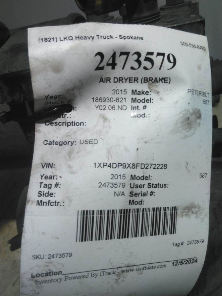 186930-821- USED BENDIX AIR DRYER[BRAKE] - 2015 PETERBILT 587