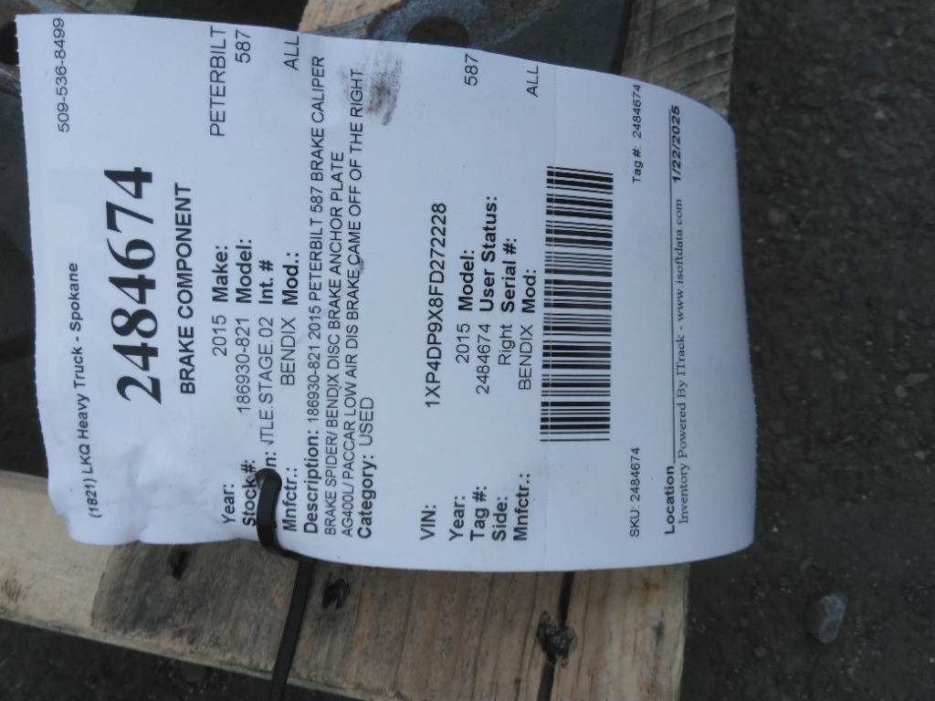 186930-821 2015 PETERBILT 587 BRAKE CALIPER BRAKE SPIDER/ BENDIX DISC BRAKE ANCHOR PLATE