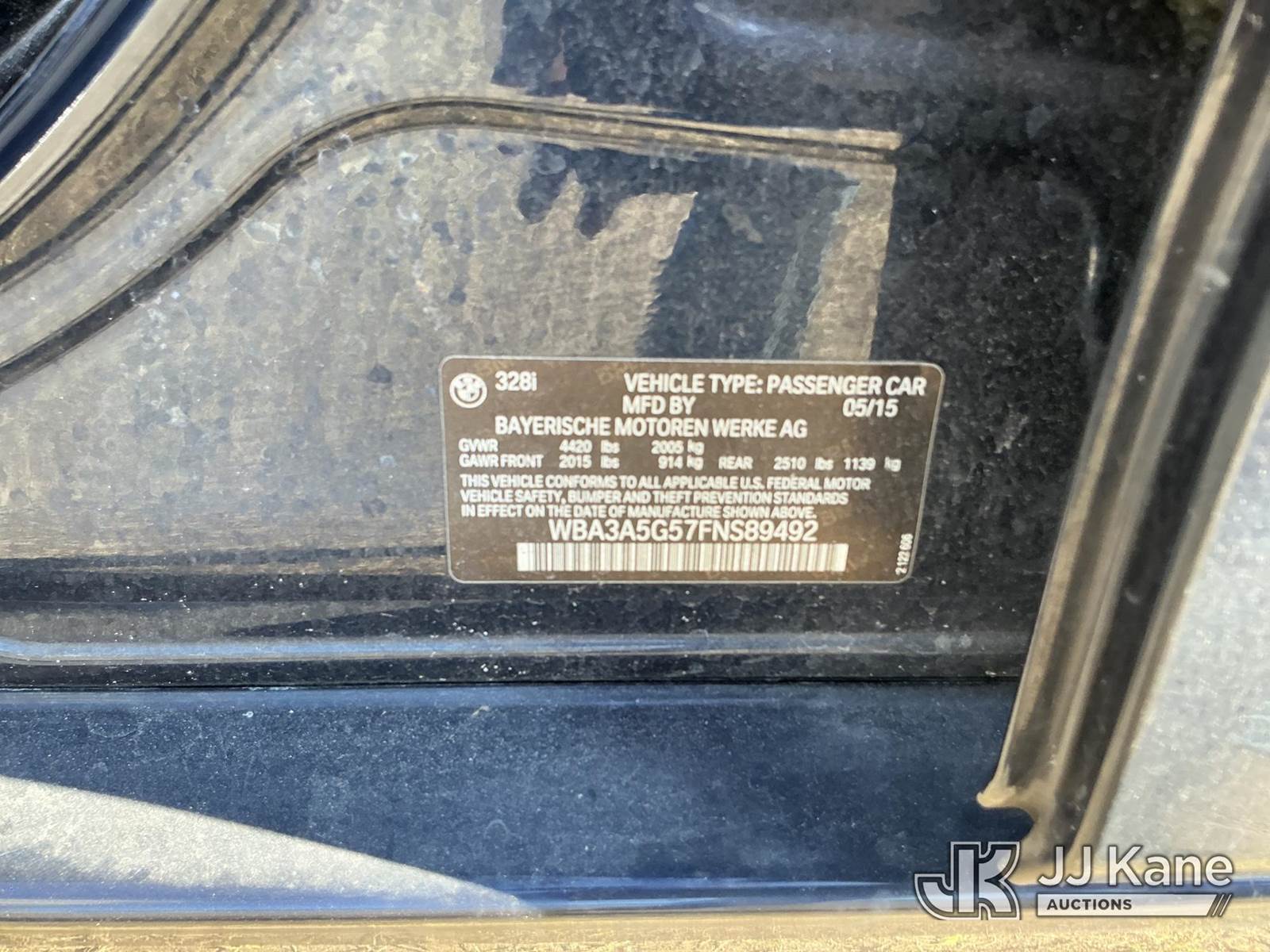 2015 BMW 328i 4-Door Sedan, 2.0L L4 DOHC 16V gas, 8-Speed Automatic, RWD, A/C, (138,158 miles) (Runs & Moves) (Check Engine Light On, ABS Light On) (FL Residents Purchasing Titled Items - tax, title & registration fees will be collected at the maximum rate of $400.00 under 25,999 and $800.00 for Over 26,000 and $250.00 trailers - Proof of insurance is mandatory; Out of State Residents Purchasing Title Items - tax will be collected based upon your state rate.) This is a Titled Item NOTE: This unit is being sold AS IS/WHERE IS via Timed Auction and is located in Thonotosassa, FL. Inspection & preview days for this unit are the 2 business days prior to the first day of items closing for this auction, item is located at 11720 N US 301 Thonotosassa, Fl 33592 and hours of operations are 8a-4p. For pre-sale questions, please contact Office Staff @ (813) 986-2485. (Buyer is responsible for removal. Assistance by consignor or JJ Kane Auctions is not assured.)