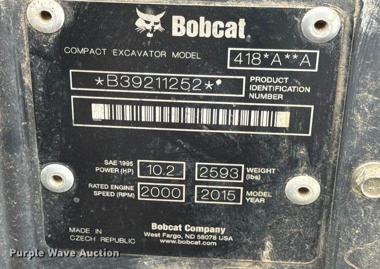 2015 Bobcat 418 Mini Excavator