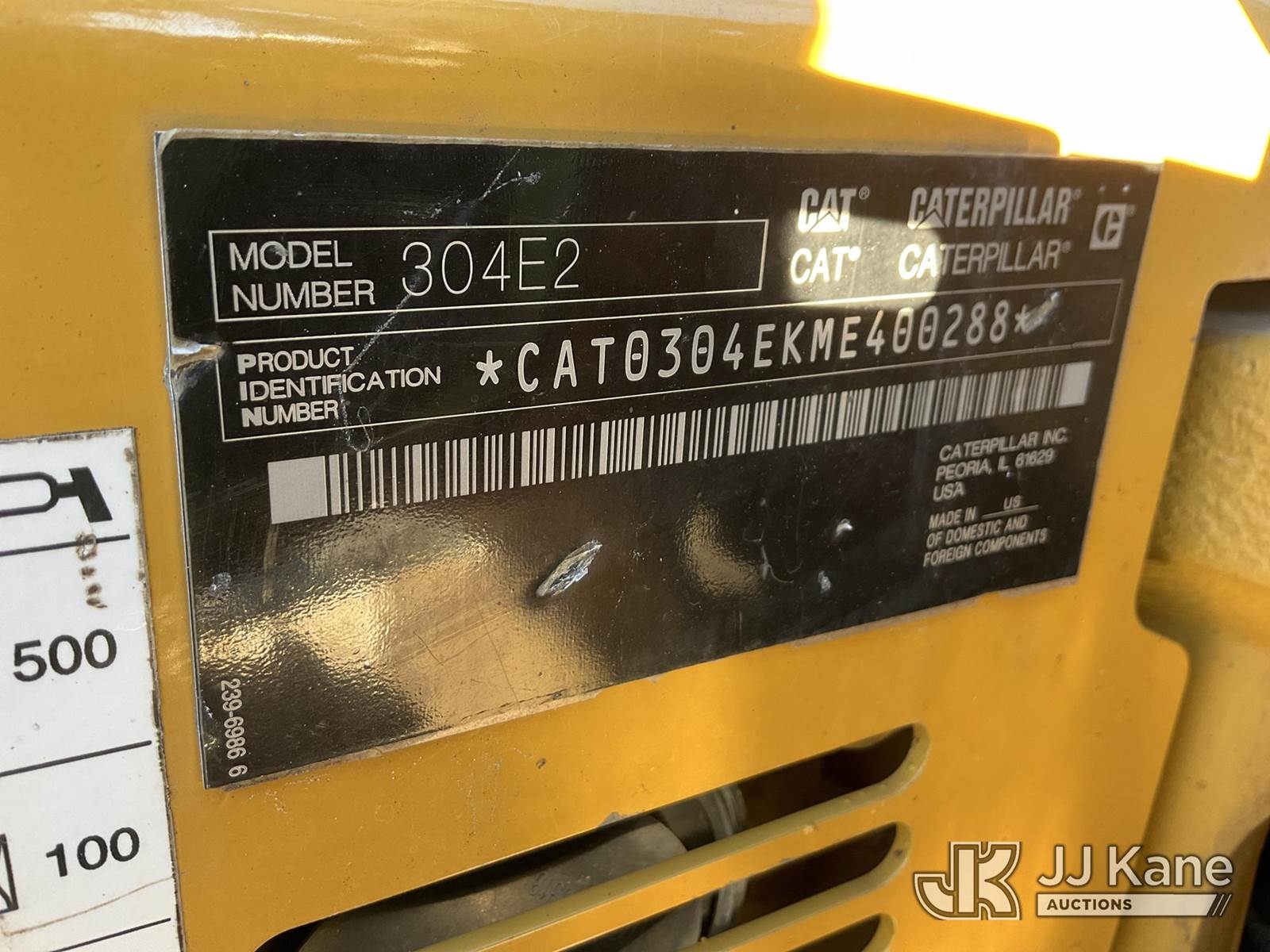 2015 Caterpillar 304E2 CR Mini Hydraulic Excavator, s/n ME400288, Cat diesel, Hydraulic Drive, A/C, with 5 ft 4 in stick, 16 in digging bucket, hyd thumb, aux hyd, backfill blade, rubber tracks & EROPS w/ AC, (Duke Unit) (Runs, Moves & Operates ) (Reads 503 hours) NOTE: This unit is being sold AS IS/WHERE IS via Timed Auction and is located in China Grove, NC. Inspection & preview days for this unit are the 2 business days prior to the first day of items closing for this auction, item is located at 820 E NC Hwy 152 China Grove, NC 28023 and hours of operations are 8a-4p. For pre-sale questions, please contact Office Staff @ (704) 674-1113. (Buyer is responsible for removal. Assistance by consignor or JJ Kane Auctions is not assured.)