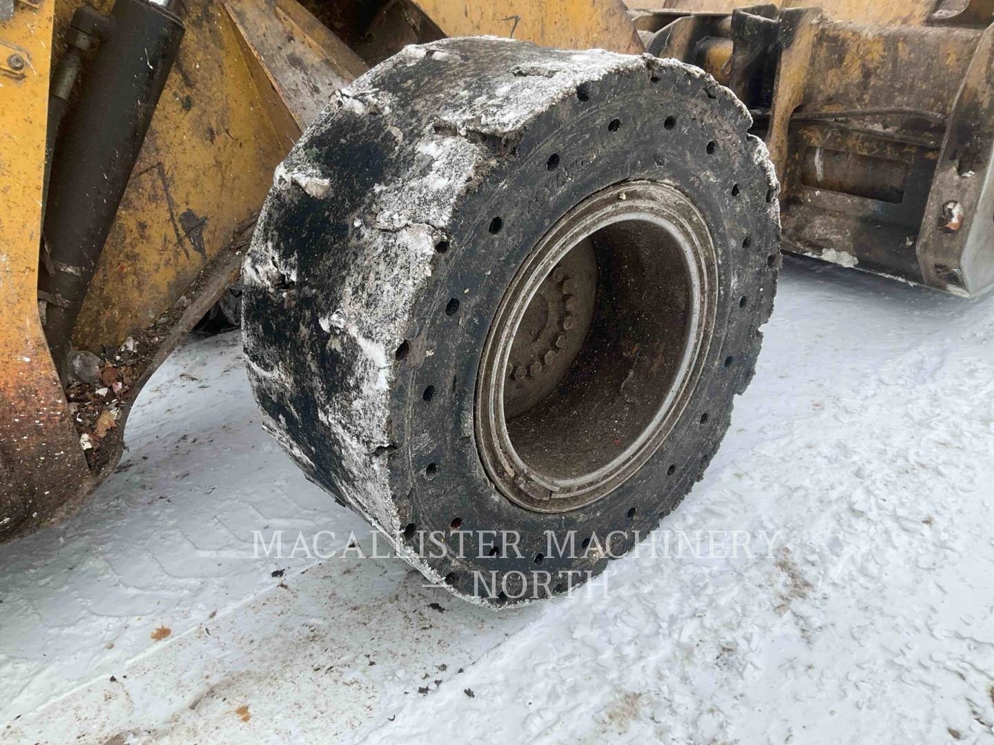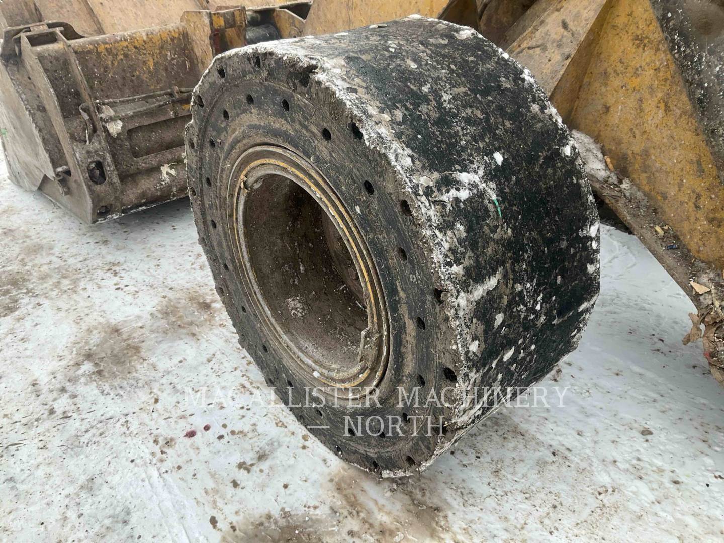 Approximately 2% tread remaing on solid rubber tires