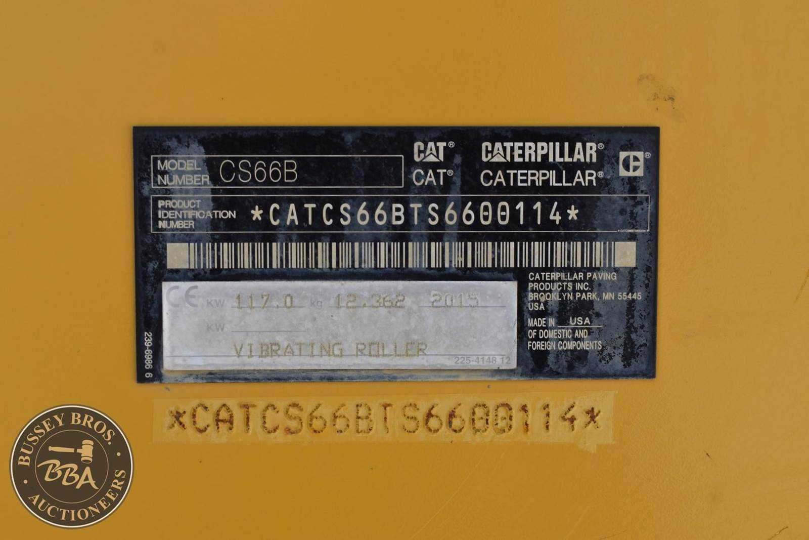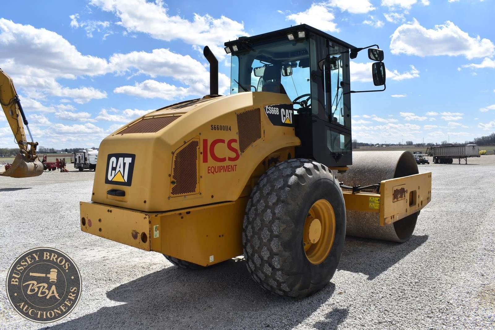 2015 Caterpillar CS66B Smooth Drum Roller - 2,767 hours, EROPS, heat, ac, radio, 84 inch smooth drum, suspension seat, Runs and Operates SN#CATCS66BTS6600114
