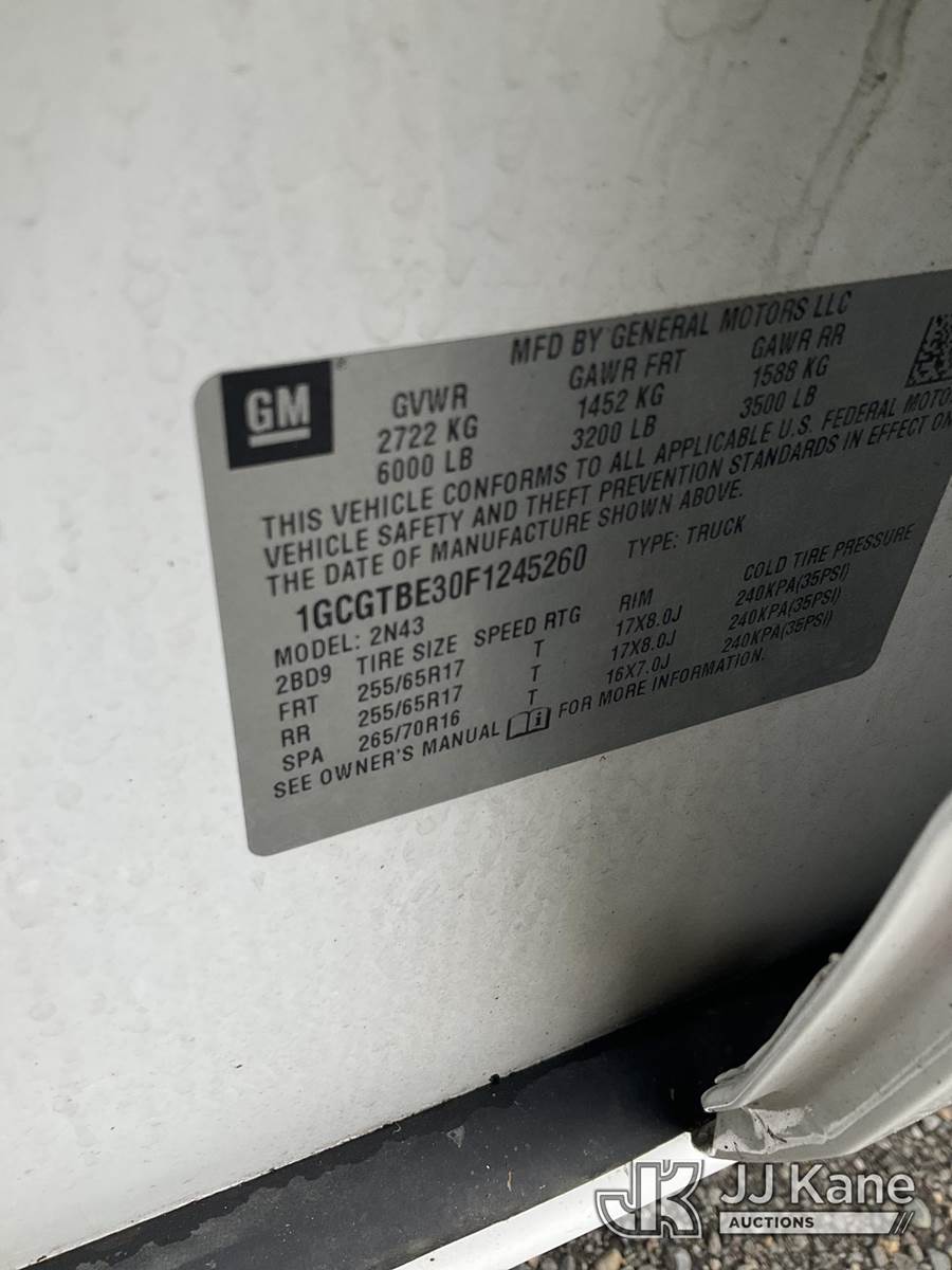 2015 Chevrolet Colorado 4x4 Crew-Cab Pickup Truck, 3.6L V6 DOHC 24V GAS, 6-Speed Automatic, A/C, with bed cover, (138,063 miles) (Runs & Moves) This is a Titled Item NOTE: This unit is being sold AS IS/WHERE IS via Timed Auction and is located in Tacoma, WA. Inspection & preview days for this unit are by appointment only; please contact us at contact@jjkane.com or 84-Go-JJKane for more details. (Buyer is responsible for removal. Assistance by consignor or JJ Kane Auctions is not assured.)
