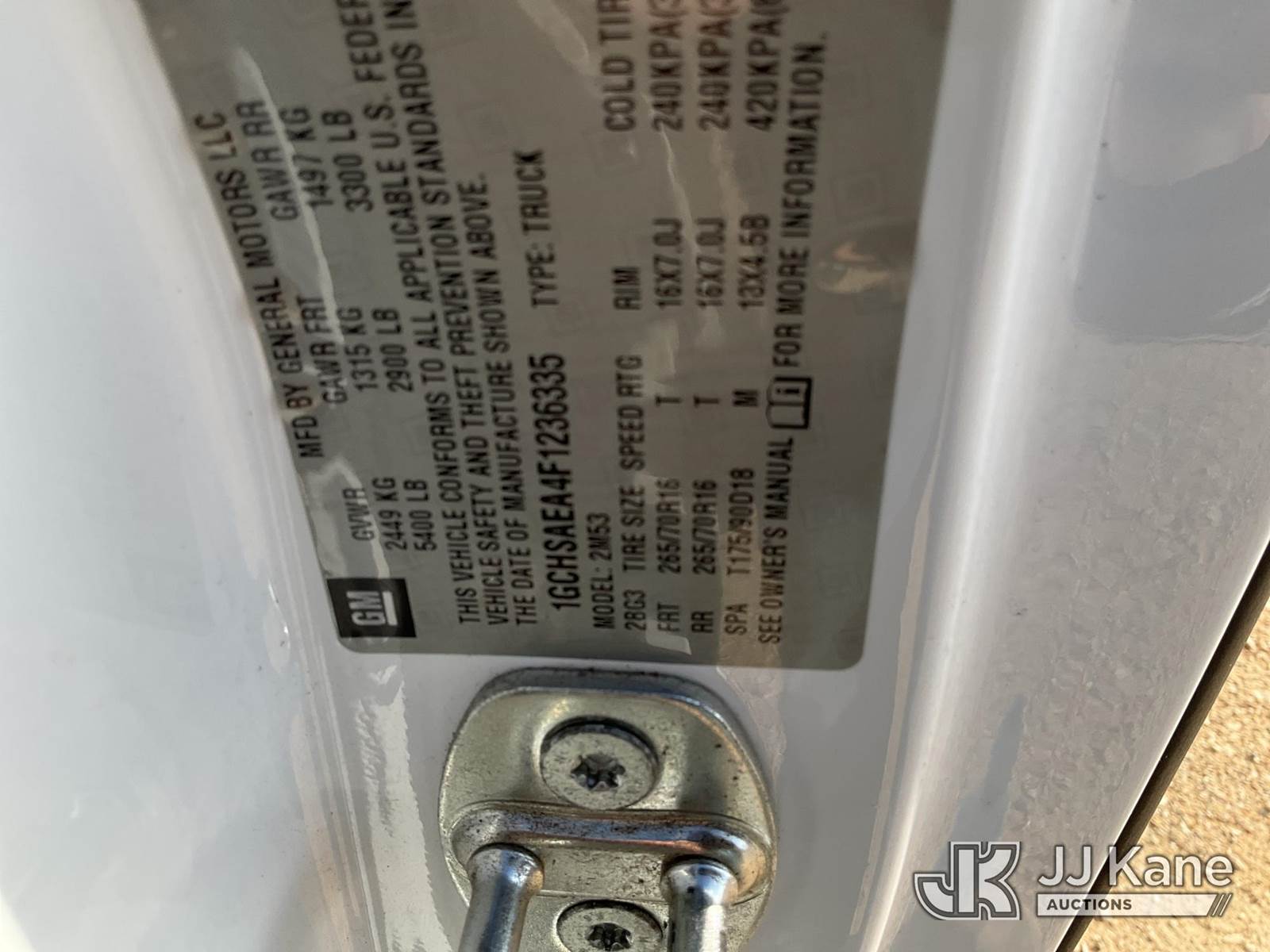 2015 Chevrolet Colorado Extended-Cab Pickup Truck, 4-cyl, 6-Speed Automatic, Gas, A/C, with bed cap, (198,357 miles) (Not Running, Condition Unknown, Cranks With Jump, Check Engine Light On, Traction Control Light On, Cracked Windshield, Engine Has Slight Knock) This is a Titled Item NOTE: This unit is being sold AS IS/WHERE IS via Timed Auction and is located in Marion, TX. Inspection & preview days for this unit are the 2 business days prior to the first day of items closing for this auction, item is located at 3292 S Santa Clara Rd Marion, TX 78124 and hours of operations are 8a-4p. For pre-sale questions, please contact Brian Jarrell @ 210-540-3147. (Buyer is responsible for removal. Assistance by consignor or JJ Kane Auctioneers is not assured.)