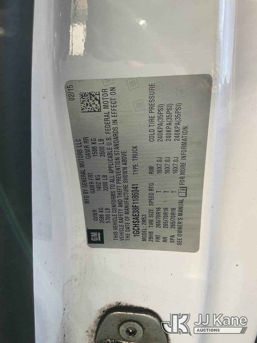 2015 Chevrolet Colorado Extended-Cab Pickup Truck, 6-cyl gas, 6-Speed Automatic, A/C, with Tow package, (66,293 miles) (Runs & Moves) This is a Titled Item NOTE: This unit is being sold AS IS/WHERE IS via Timed Auction and is located in Jurupa Valley, CA. Inspection & preview days for this unit are the 2 business days prior to the first day of items closing for this auction, item is located at 4510 Muth Way Jurupa Valley, CA 92509 and hours of operations are 8a-4p. For pre-sale questions, please contact please contact Office Staff @ (310) 353-7140. Dealer License Number 45696. (Buyer is responsible for removal. Assistance by consignor or JJ Kane Auctions is not assured.)