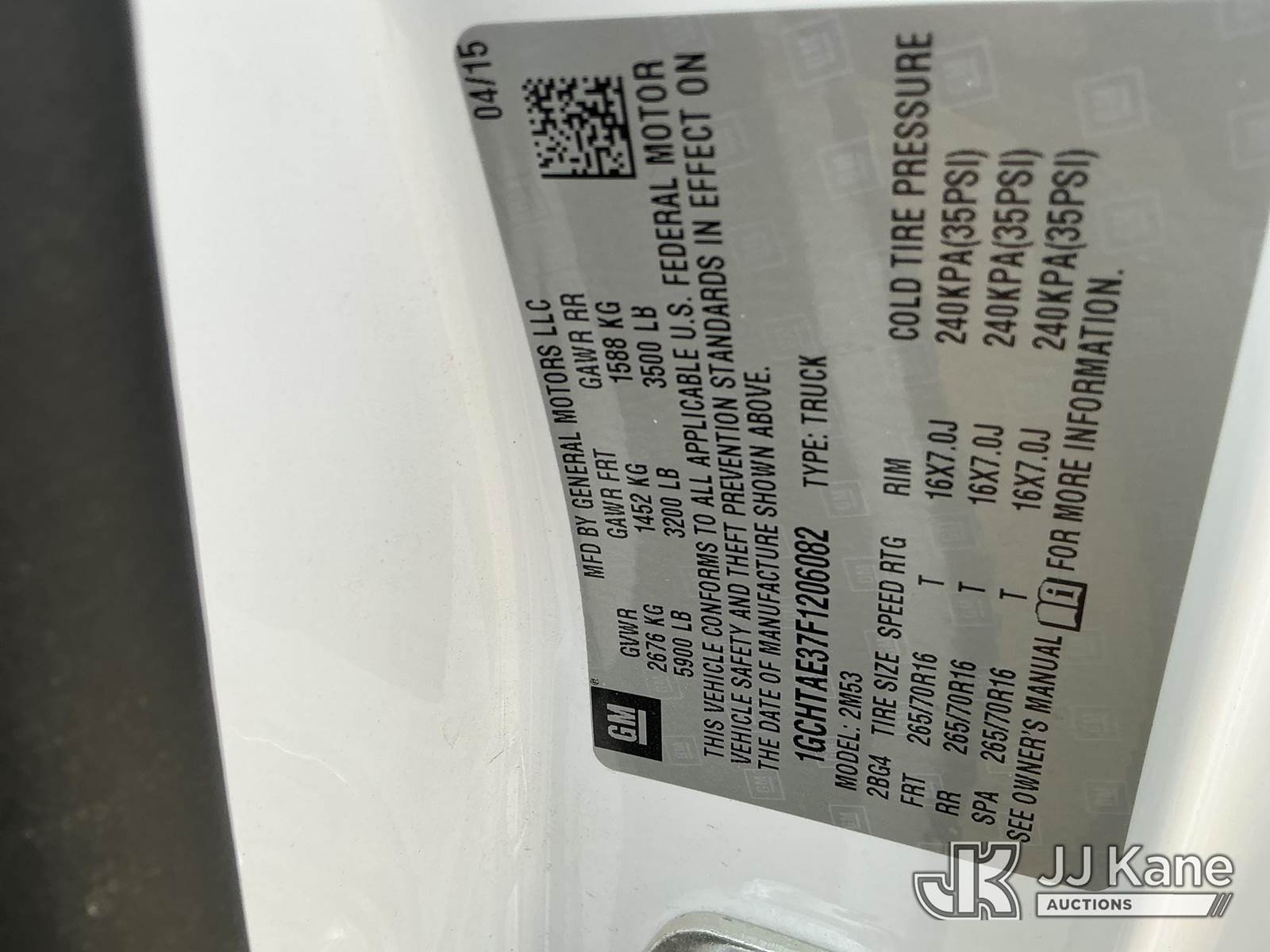 2015 Chevrolet Colorado Extended-Cab Pickup Truck, 6-cyl gas, 6-Speed Automatic, A/C, with Deezee Side Opening Bed Box , (160,764 miles) (Runs & Moves) (Jump To Start) (Reads 3,657 hours) This is a Titled Item NOTE: This unit is being sold AS IS/WHERE IS via Timed Auction and is located in Fort Lupton, CO. Inspection & preview days for this unit are the 2 business days prior to the first day of items closing for this auction, item is located at 2105 Northland Dr Fort Lupton, CO 80621 and hours of operations are 8a-4p. For pre-sale questions, please contact Dakota Hoffman @ (720) 621-0786. Dealer License Number 47109. (Buyer is responsible for removal. Assistance by consignor or JJ Kane Auctions is not assured.)