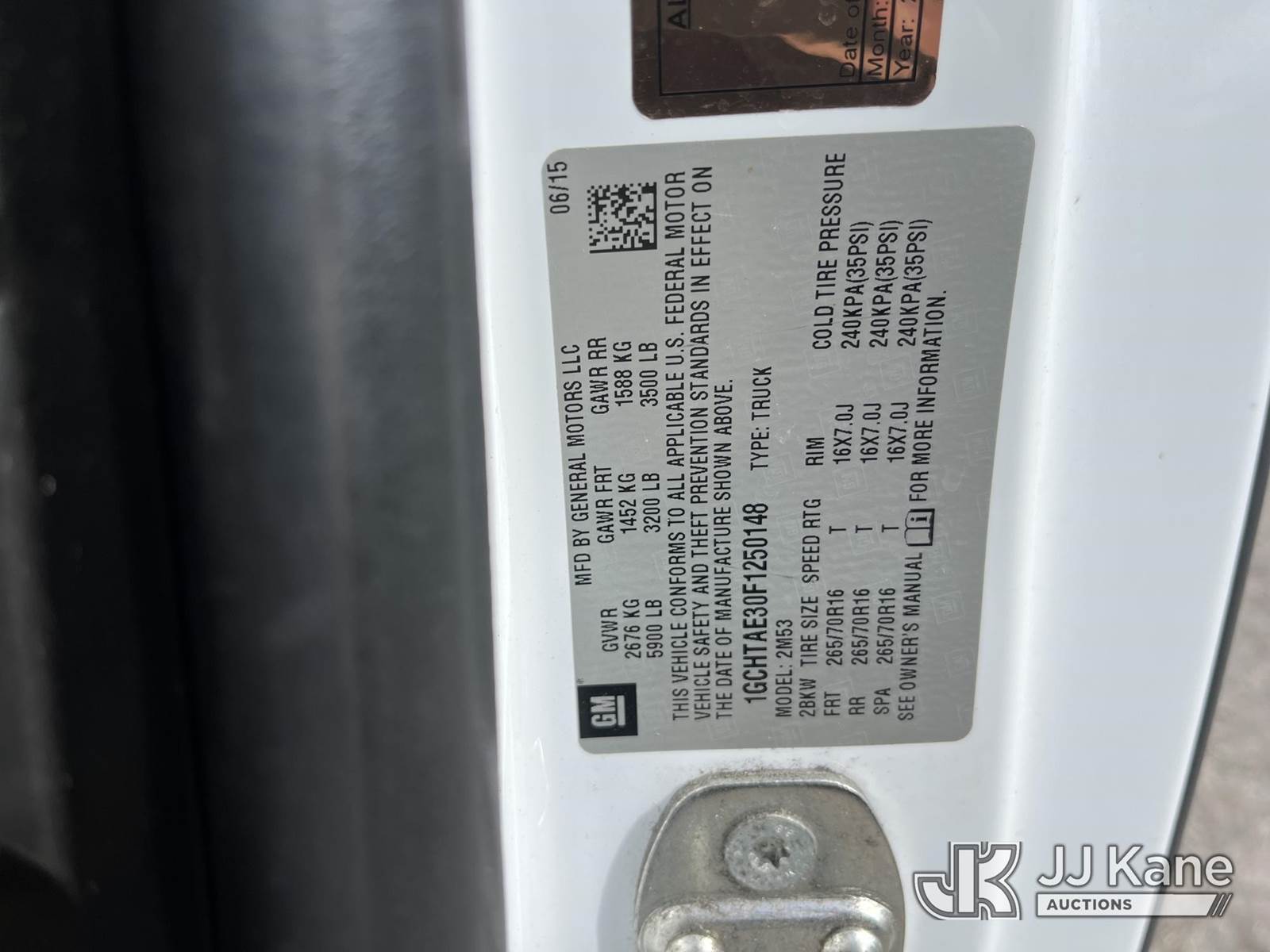2015 Chevrolet Colorado WT Ext. Cab 4WD Pickup Truck, 3.6L V6 DOHC 24V Gas,, Auto, A/C, (208,067 miles) (Runs & Moves) (Camera Not Included)(FL Residents Purchasing Titled Items – tax, title & registration fees will be collected at the maximum rate of $400.00 under 25,999 and $800.00 for Over 26,000 and $250.00 trailers – Proof of insurance is mandatory; Out of State Residents Purchasing Title Items – tax will be collected based upon your state rate.) This is a Titled Item NOTE: This unit is being sold AS IS/WHERE IS via Timed Auction and is located in Thonotosassa, FL. Inspection & preview days for this unit are the 2 business days prior to the first day of items closing for this auction, item is located at 11720 N US 301 Thonotosassa, Fl 33592 and hours of operations are 8a-4p. For pre-sale questions, please contact Office Staff @ (813) 986-2485. (Buyer is responsible for removal. Assistance by consignor or JJ Kane Auctions is not assured.)