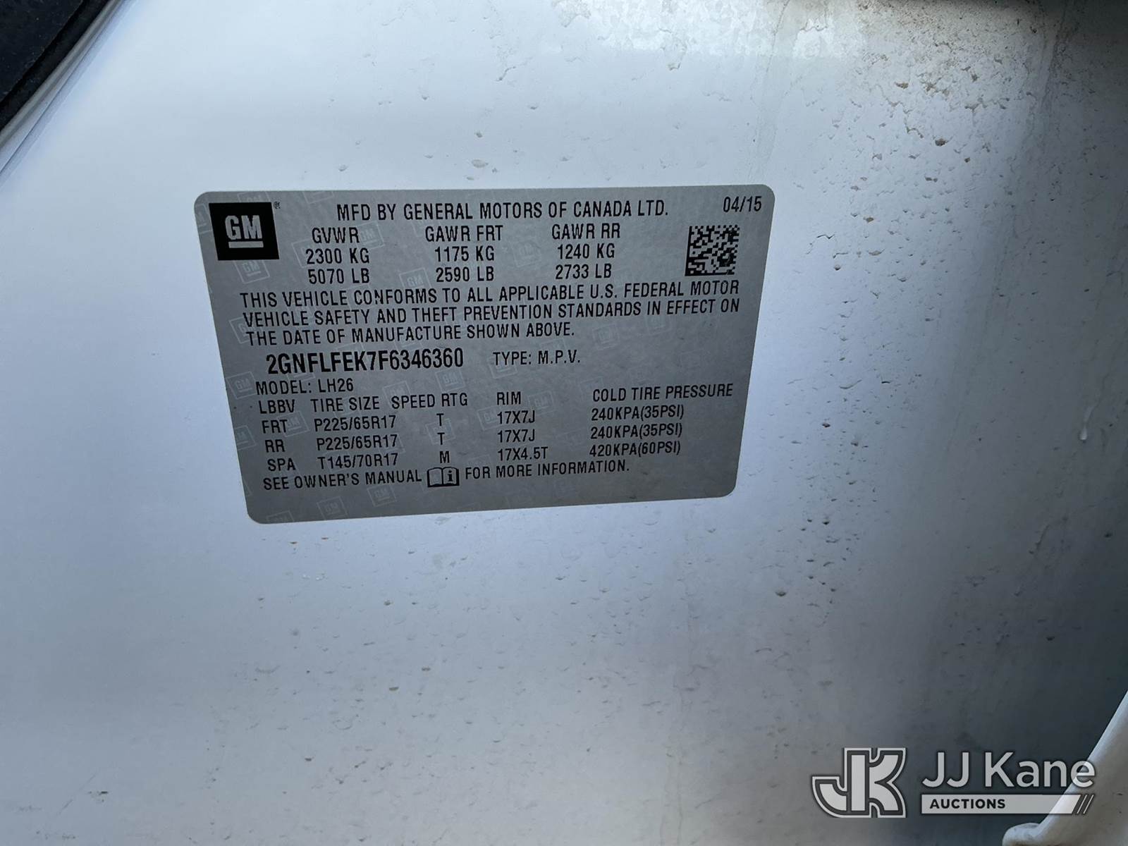 2015 Chevrolet Equinox 4-Door Sport Utility Vehicle, 2.4L L4 DOHC 16V FFV gas, 6-Speed Automatic, AWD, A/C, (121,982 miles) Co-op Owned (Runs & Moves) This is a Titled Item NOTE: This unit is being sold AS IS/WHERE IS via Timed Auction and is located in Brandon, SD. For specific technical information or questions about this item, contact Ben Boucher at (612) 616-2798. For load-out and pick information, reference the hauler sheet sent out after purchase. These items are used and may contain defects that are not immediately detectable. Text descriptions and photos given are meant to be used as a guide only. The conditions are provided by the consignor. The Buyer is responsible for inspecting the item before bidding. Purchaser acknowledges ALL lots must be removed within 10 business days of the Auction, or a storage fee may be incurred. All information provided is believed to be correct but no warranty as such is either intended or implied. All items are sold AS IS - WHERE IS AND WITH ALL FAULTS AND DEFECTS THEREIN. (Buyer is responsible for removal. Assistance by consignor or JJ Kane Auctions is not assured.)