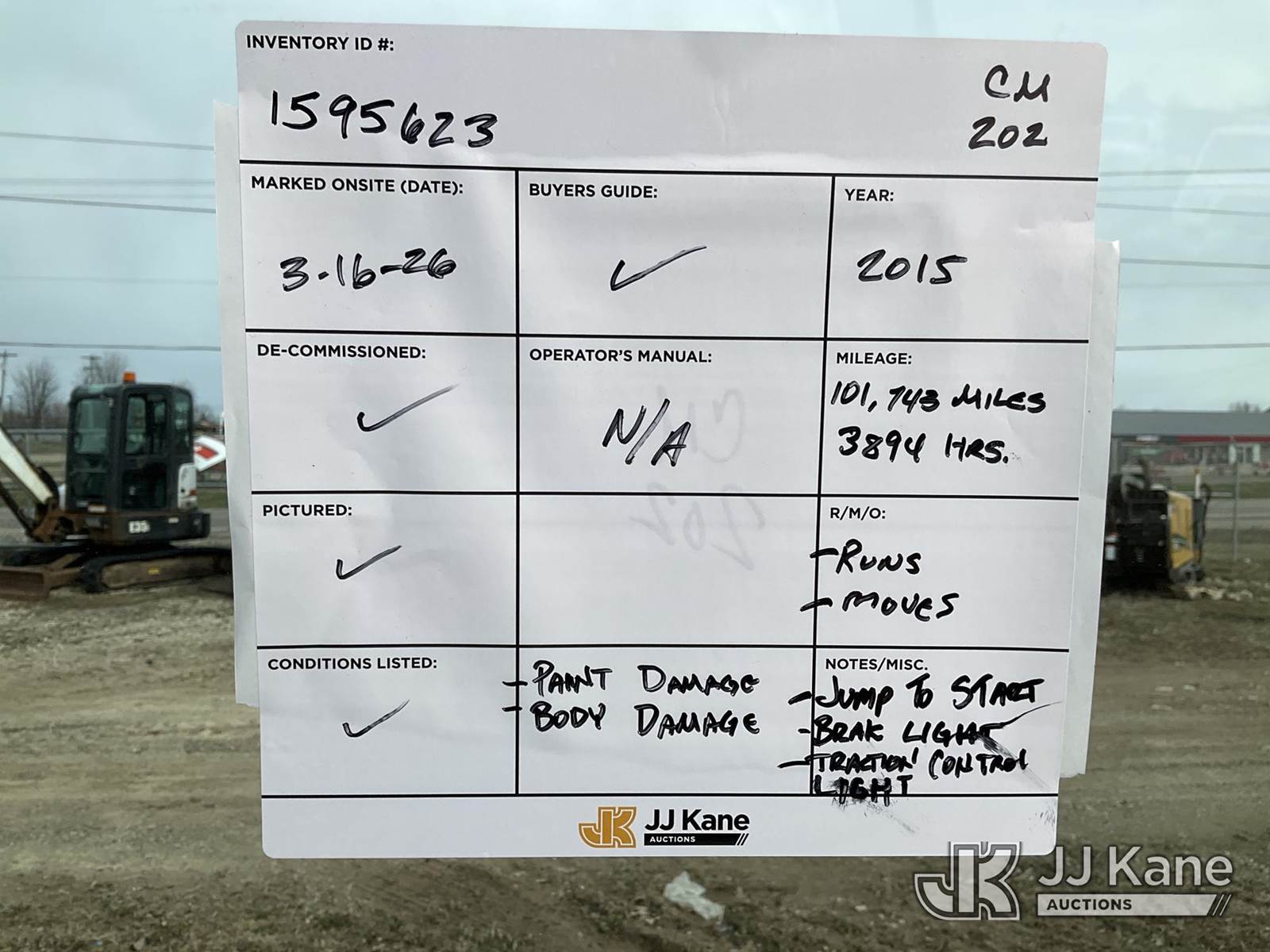 2015 Chevrolet Express 2500 Cargo FFV Cargo Van, 4.8L V8 RWD, FFV, 6-Speed Automatic, A/C, with Ladder rack, towing hitch , (101,807 miles) (Runs, Moves)( Jump To Start, Brake Light, Traction Control Light,Paint Damage, Body Damage ) (Reads 3,894 hours) This is a Titled Item NOTE: This unit is being sold AS IS/WHERE IS via Timed Auction and is located in Charlotte, MI. Inspection & preview days for this unit are the 2 business days prior to the first day of items closing for this auction, item is located at 750 Island Hwy Charlotte, MI 48813 and hours of operations are 8a-4p. For pre-sale questions, please contact Corey Cook at (517) 983-0796 or corey.cook@jjkane.com (Buyer is responsible for removal. Assistance by consignor or JJ Kane Auctions is not assured.)
