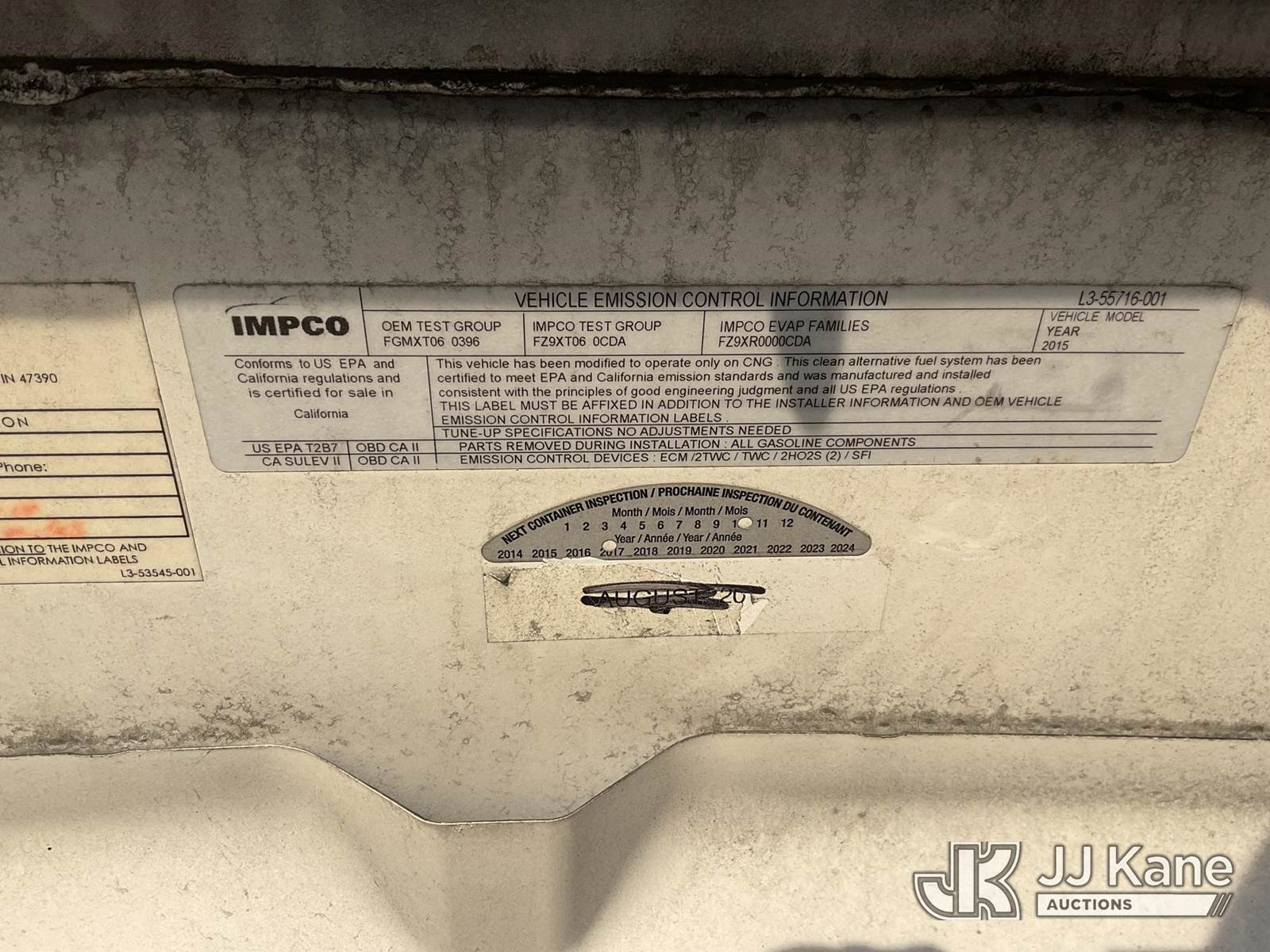 2015 Chevrolet Express 2500 Cargo Van, 6.0L V8 OHV 16V CNG RWD, 6-Speed Automatic, A/C, (96,136 miles) (Runs & Moves)(Check Engine Light On, Service Stabilitrak & Service Traction Control On Dash, Driver Side Rear Body Damaged, Passenger Side Rear Fender Damaged) (Bidding Restricted to Licensed Vehicle Dealers Only), This is a Titled Item NOTE: This unit is being sold AS IS/WHERE IS via Timed Auction and is located in Dixon, CA. Inspection & preview days for this unit are the 2 business days prior to the first day of items closing for this auction, item is located at 8668 Sparling Ln Dixon, CA 95620 and hours of operations are 8a-4p. For pre-sale questions, please contact JJ Kane Staff at (707) 678-8060 (dixon@jjkane.com). Dealer License Number 45696. (Buyer is responsible for removal. Assistance by consignor or JJ Kane Auctions is not assured.)