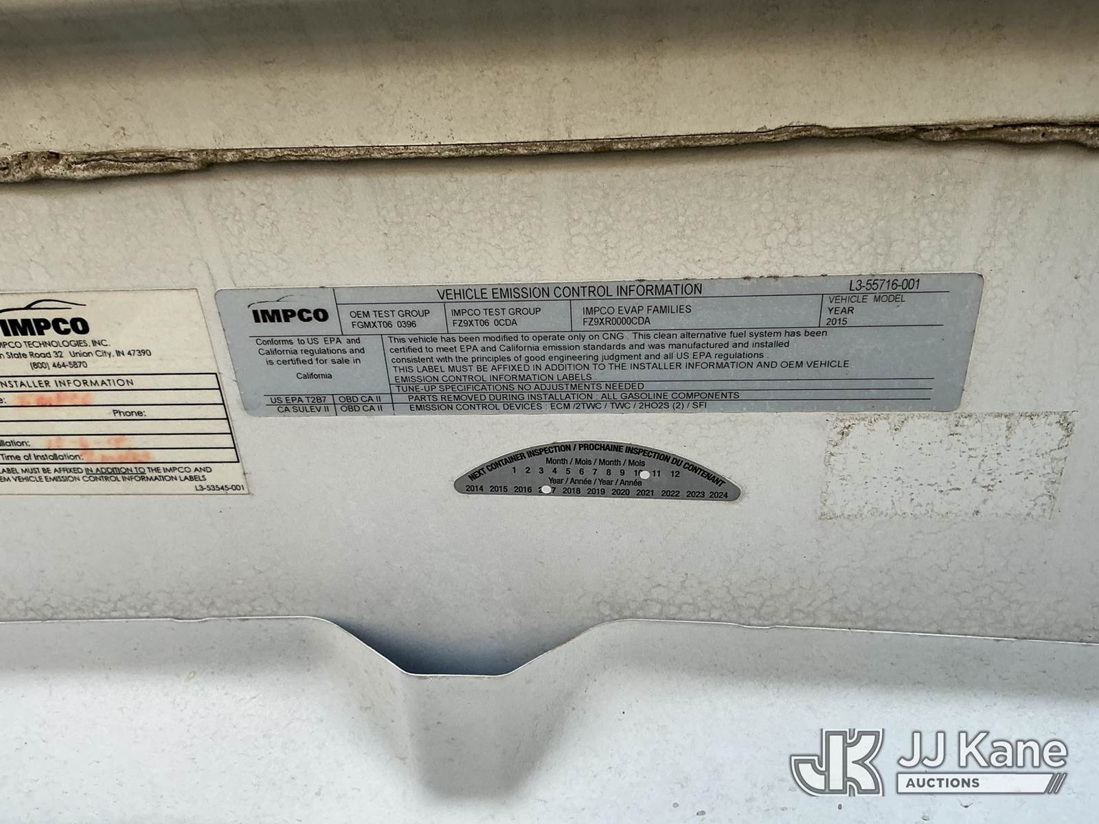 2015 Chevrolet Express 2500 Cargo Van, 6.0L V8 OHV 16V RWD, CNG, 6-Speed Automatic, A/C, (33,760 miles) (Runs & Moves)() This is a Titled Item NOTE: This unit is being sold AS IS/WHERE IS via Timed Auction and is located in Dixon, CA. Inspection & preview days for this unit are the 2 business days prior to the first day of items closing for this auction, item is located at 8668 Sparling Ln Dixon, CA 95620 and hours of operations are 8a-4p. For pre-sale questions, please contact JJ Kane Staff at (707) 678-8060 (dixon@jjkane.com). Dealer License Number 45696. (Buyer is responsible for removal. Assistance by consignor or JJ Kane Auctions is not assured.)