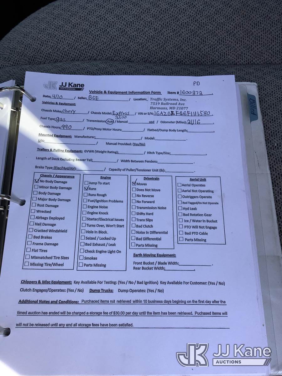 2015 Chevrolet Express 3500 Extended Passenger Van, 6.0L V8 FFV, RWD, Automatic, A/C, (21,116 miles) (Runs & Moves) (Removal is by Appointment Only, Buyer MUST make a appointment prior to picking up, Buyer/Transporter Must have PAID IN FULL RELEASE. No onsite assistance available, Please Come prepared.) This is a Titled Item NOTE: This unit is being sold AS IS/WHERE IS via Timed Auction and is located in Harmans, MD. Inspection & preview days for this unit are by appointment only; please contact us at contact@jjkane.com or 84-Go-JJKane for more details. For pre-sale questions, please contact the on-site office @ (443) 557-0025 or Kevin.Waggoner@JJKane.com. (Buyer is responsible for removal. Assistance by consignor or JJ Kane Auctions is not assured.)