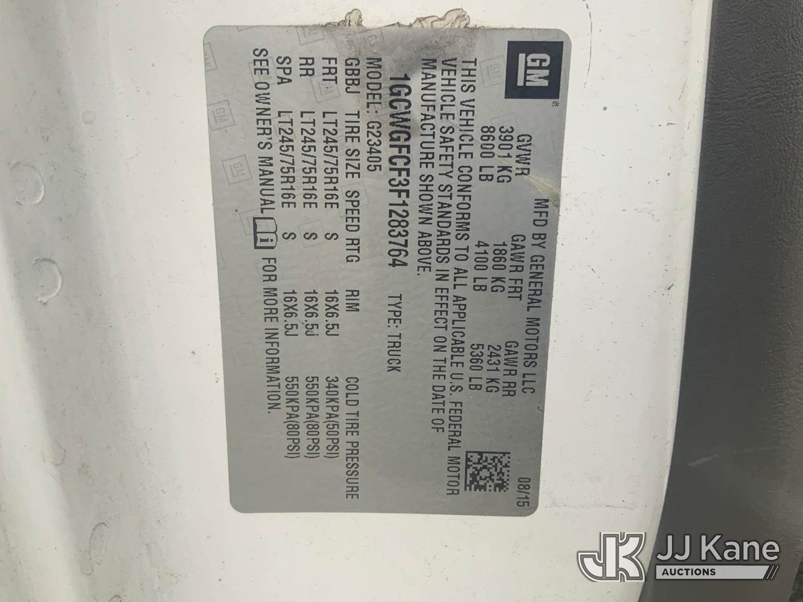 2015 Chevrolet Express G2500 Cargo Van, 8-cyl gas, Auto, A/C, (103,381 miles) (Runs & Moves) This is a Titled Item NOTE: This unit is being sold AS IS/WHERE IS via Timed Auction and is located in Hawk Point, MO. For more information & removal arrangements please contact Adam Stanek at 636-295-1594. (Buyer is responsible for removal. Assistance by consignor or JJ Kane Auctioneers is not assured.)