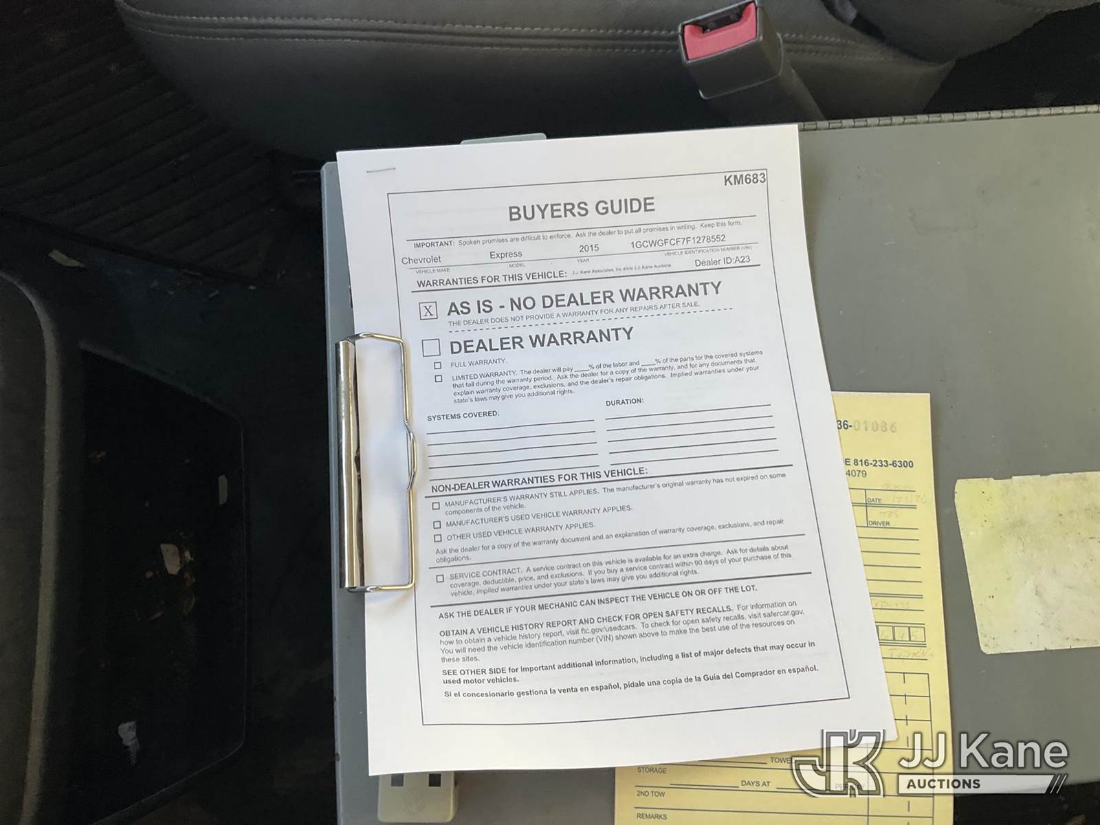 2015 Chevrolet Express G2500 Cargo Van, 4.8L V8 FFV gas, RWD, 6-Speed Automatic, A/C, (107,316 miles) (Runs & Moves) (Jump To Start, TPS Light On, Body Damage) This is a Titled Item NOTE: This unit is being sold AS IS/WHERE IS via Timed Auction and is located in Kansas City, MO. Inspection & preview days for this unit are the 2 business days prior to the first day of items closing for this auction, item is located at 962 Tel Aviv Ave Kansas City, MO 64153 and hours of operations are 8a-4p. For pre-sale questions, please contact Ricky McPherson @ (816) 610-2250. (Buyer is responsible for removal. Assistance by consignor or JJ Kane Auctions is not assured.)