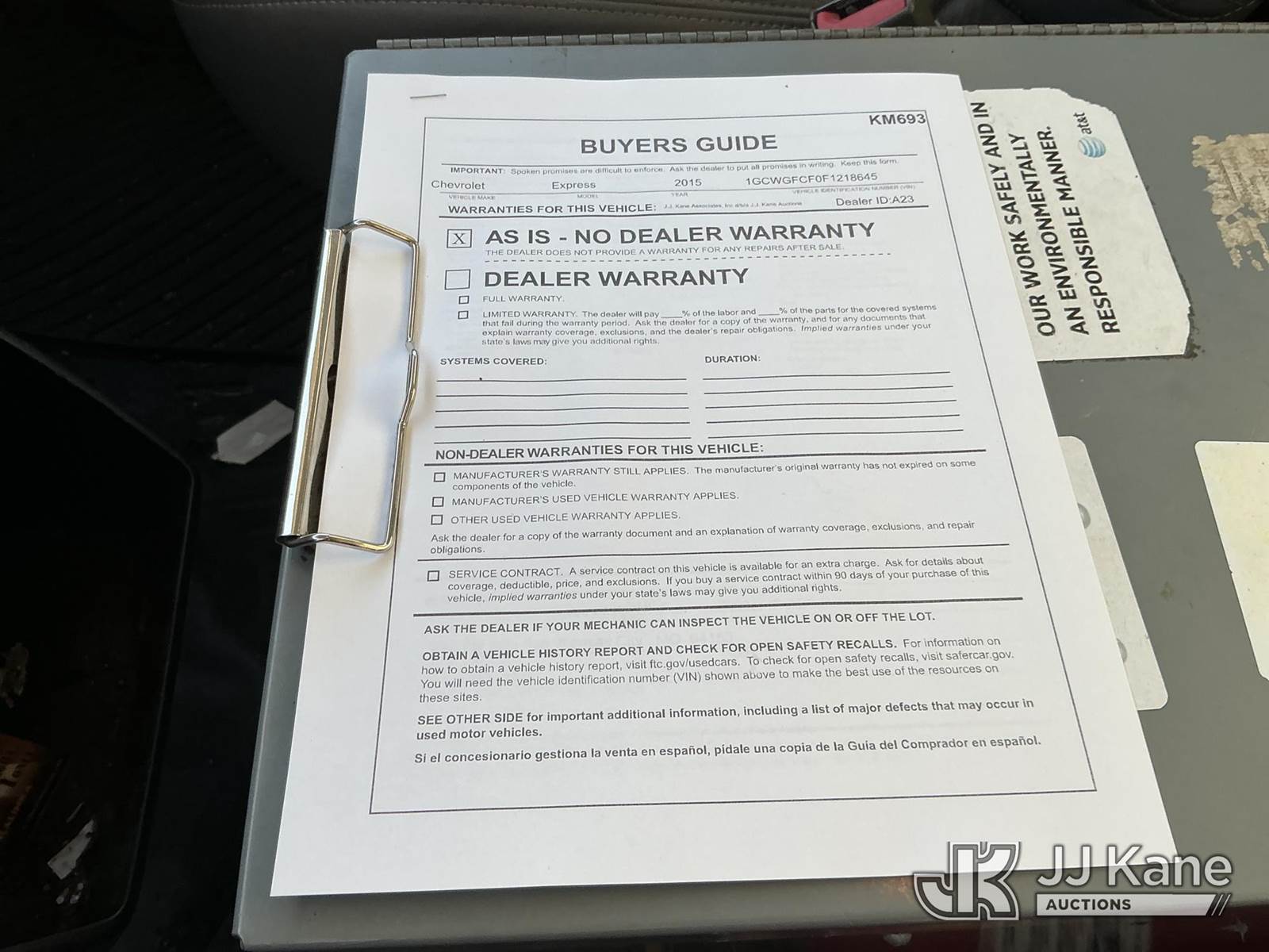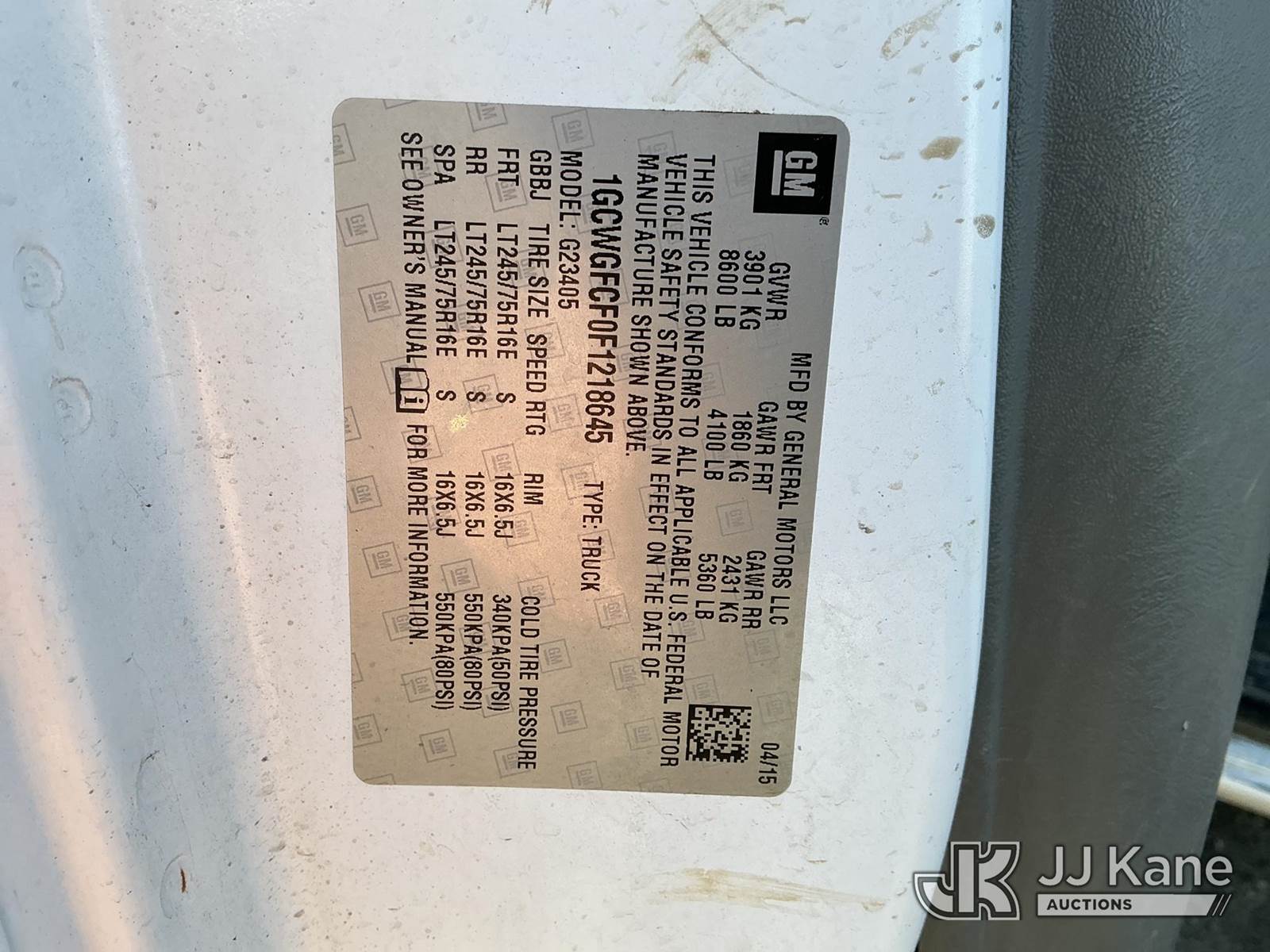 2015 Chevrolet Express G2500 Cargo Van, 4.8L V8 FFV gas, RWD, 6-Speed Automatic, A/C, (140,375 miles) (Runs & Moves) (Exhaust Leak At Muffler, TPS Light On) This is a Titled Item NOTE: This unit is being sold AS IS/WHERE IS via Timed Auction and is located in Kansas City, MO. Inspection & preview days for this unit are the 2 business days prior to the first day of items closing for this auction, item is located at 962 Tel Aviv Ave Kansas City, MO 64153 and hours of operations are 8a-4p. For pre-sale questions, please contact Ricky McPherson @ (816) 610-2250. (Buyer is responsible for removal. Assistance by consignor or JJ Kane Auctions is not assured.)