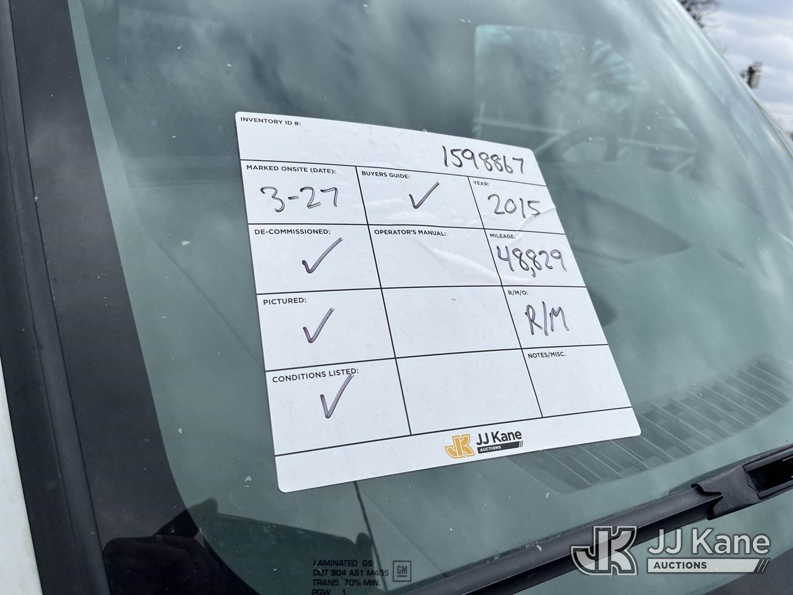 2015 Chevrolet Express G2500 Cargo Van, 4.8L V8 FFV gas, RWD, 6-Speed Automatic, A/C, (48,829 miles) (Runs & Moves) (Body/Paint Damage) This is a Titled Item NOTE: This unit is being sold AS IS/WHERE IS via Timed Auction and is located in Louisville, OH. Inspection & preview days for this unit are the 2 business days prior to the first day of items closing for this auction, item is located at 3648 Beck Ave Louisville, OH 44641 and hours of operations are 8a-4p. For pre-sale questions, please contact Aaron Coleman @ (330) 495-4041 or aaron.coleman@jjkane.com. (Buyer is responsible for removal. Assistance by consignor or JJ Kane Auctions is not assured.)