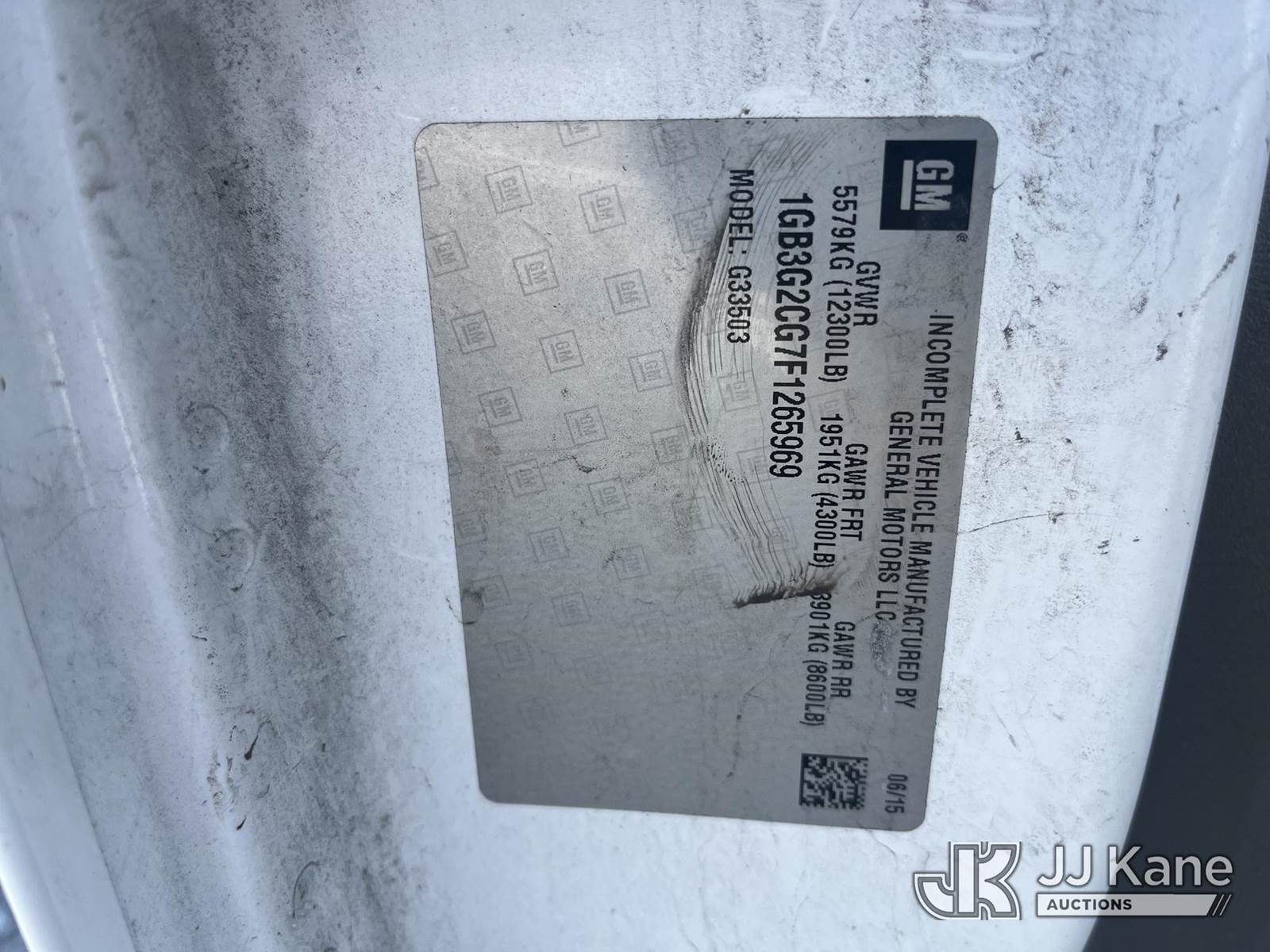 2015 Chevrolet Express G3500 Cube Van, 8-cyl gas, 6-Speed Automatic, A/C, (86,975 miles) (Runs & Moves) (Paint/Body Damage) (Reads 9,305 hours) This is a Titled Item NOTE: This unit is being sold AS IS/WHERE IS via Timed Auction and is located in Hawk Point, MO. For more information & removal arrangements please contact Adam Stanek at 636-295-1594. (Buyer is responsible for removal. Assistance by consignor or JJ Kane Auctioneers is not assured.)