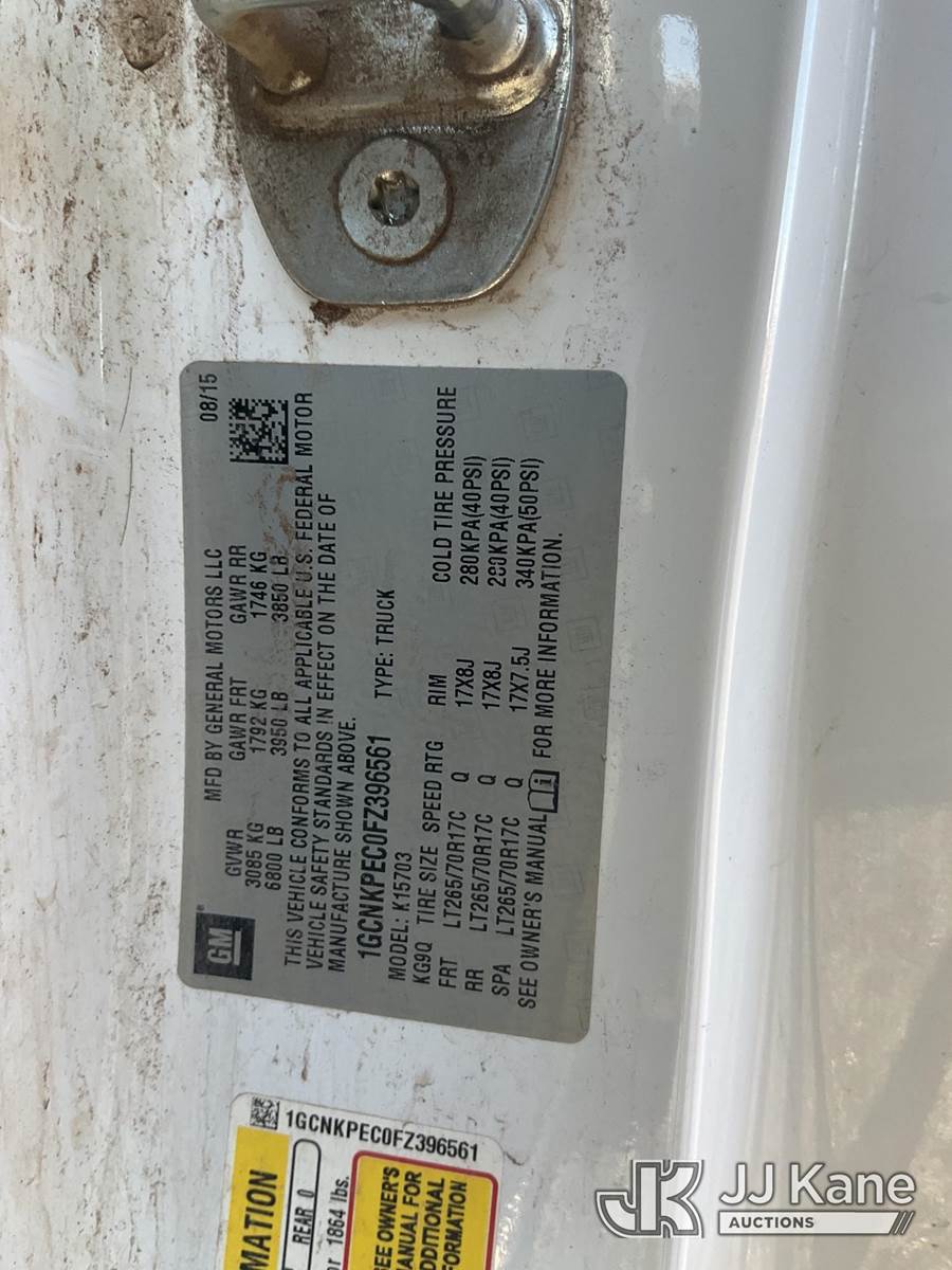 2015 Chevrolet Silverado 1500 4x4 Pickup Truck, 8-cyl gas, 6-Speed Automatic, A/C, with two weather guard pack rats, (161,052 miles) (Runs & Moves) This is a Titled Item NOTE: This unit is being sold AS IS/WHERE IS via Timed Auction and is located in Joseph City, AZ. For more information & removal arrangements please contact Carson Wenner @ 480-617-3620. (Buyer is responsible for removal. Assistance by consignor or JJ Kane Auctions is not assured.)