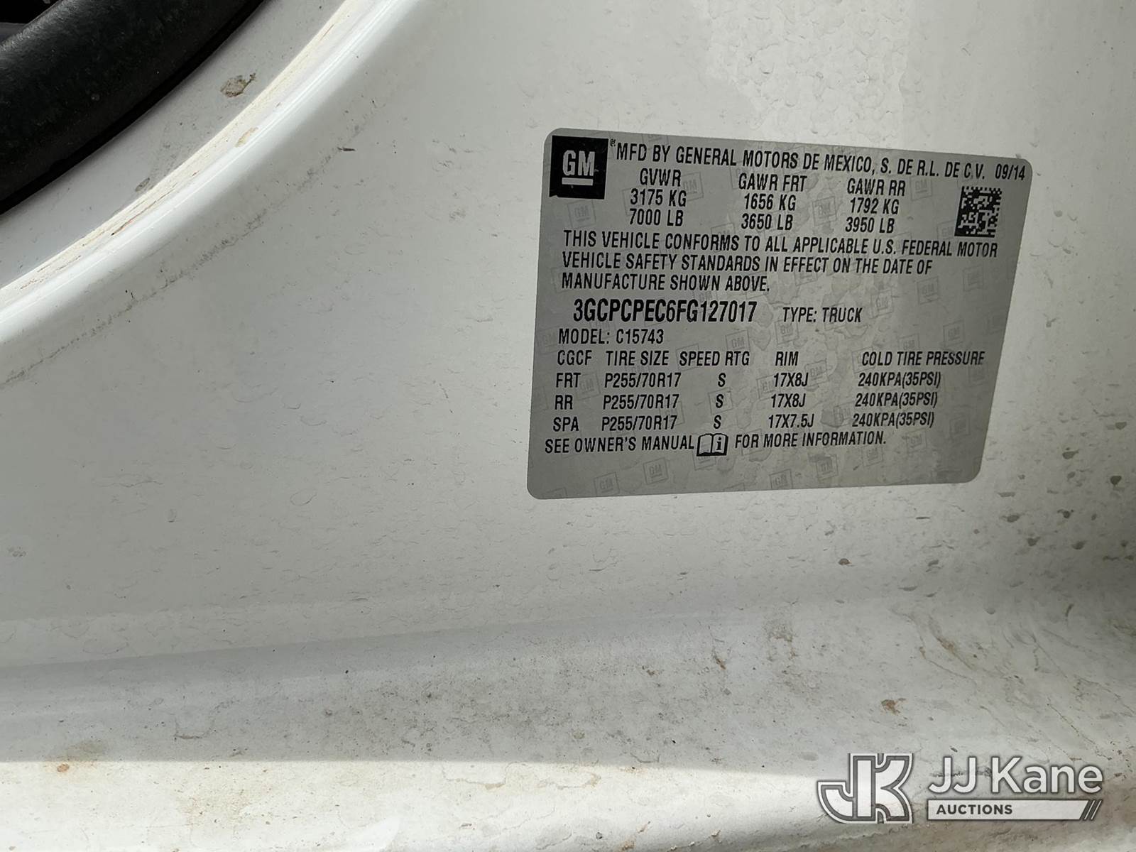 2015 Chevrolet Silverado 1500 Crew-Cab Pickup Truck, 5.3L V8 OHV 16V gas, RWD, 6-Speed Automatic, A/C, (75,584 miles) (Runs & Moves) (Reads 2,960 hours) This is a Titled Item NOTE: This unit is being sold AS IS/WHERE IS via Timed Auction and is located in El Paso, TX. For pre-sale questions please call EJ Brown at (915) 341-2565. For load out and pick-up information, please reference the release form sent after purchase. (Buyer is responsible for removal. Assistance by consignor or JJ Kane Auctions is not assured.)