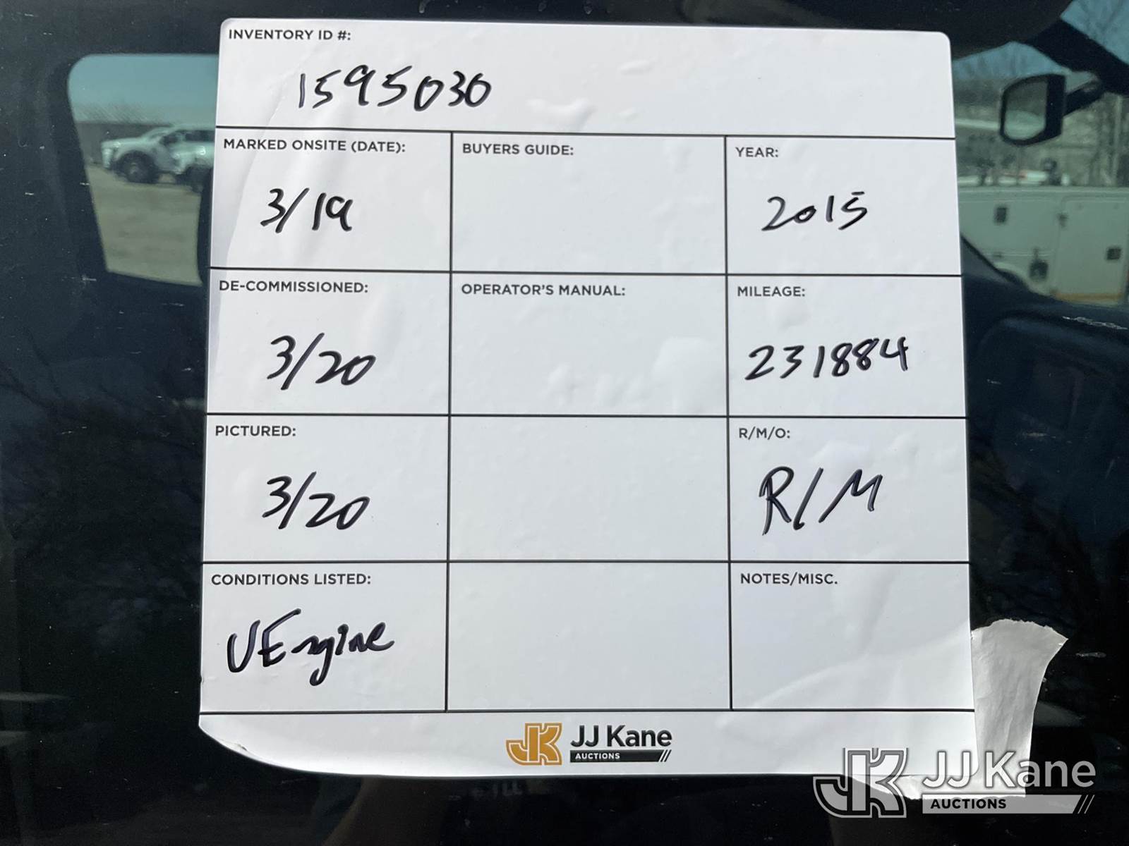 2015 Chevrolet Silverado 2500HD Crew-Cab Service Truck, 8-cyl gas, 4WD, 6-Speed Automatic, A/C, (231,884 miles) (Runs & Moves) (Check Engine Light On, Engine Noise) This is a Titled Item NOTE: This unit is being sold AS IS/WHERE IS via Timed Auction and is located in Des Moines, IA. Inspection & preview days for this unit are the 2 business days prior to the first day of items closing for this auction, item is located at 1600 NE 66th Ave Des Moines, IA 50313 and hours of operations are 8a-4p. For pre-sale questions, please contact Eric Stewart @ (515) 626-0492. (Buyer is responsible for removal. Assistance by consignor or JJ Kane Auctions is not assured.)