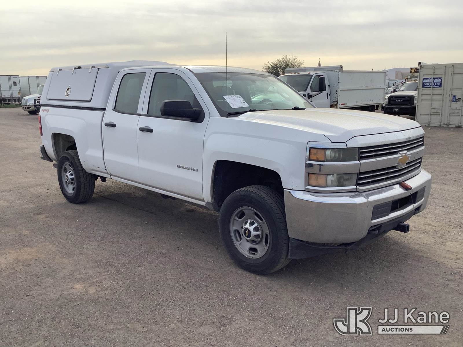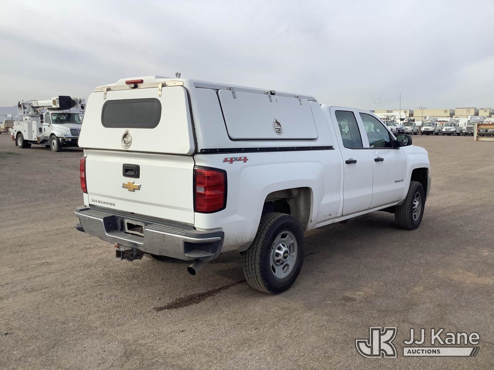 2015 Chevrolet Silverado 2500HD Extended-Cab Pickup Truck, 8-cyl gas, 4wd, 6-Speed Automatic, A/C, with Camper Shell, (281,356 miles) DECOMISSIONING REQUIRED - Please remove the Motive GPS module, wiring, and dash camera. DO NOT CUT WIRES. If wiring is routed under the headliner, please pull down a small portion of the trim and/or headliner to pull out the wiring. Do not sell until Motive equipment has been removed. Ship Motive equipment back to Lumen. LUMEN TECHNOLOGIES INC., ATTN FLEET DEPARTMENT, 5325 ZUNI ST SUITE 100, DENVER, CO 80221. The removal process takes 10-20 minutes. Lumen is to be charged $100 for this decommissioning service. Call Lance Heinen or Clay Graves if you have questions. (Runs & Moves) This is a Titled Item NOTE: This unit is being sold AS IS/WHERE IS via Timed Auction and is located in Phoenix, AZ. Inspection & preview days for this unit are the 2 business days prior to the first day of items closing for this auction, item is located at 2505 W Durango St Phoenix, AZ 85009 and hours of operations are 8a-4p. For pre-sale questions, please contact Andrew Espinoza @ (602) 393-8107. (Buyer is responsible for removal. Assistance by consignor or JJ Kane Auctions is not assured.)