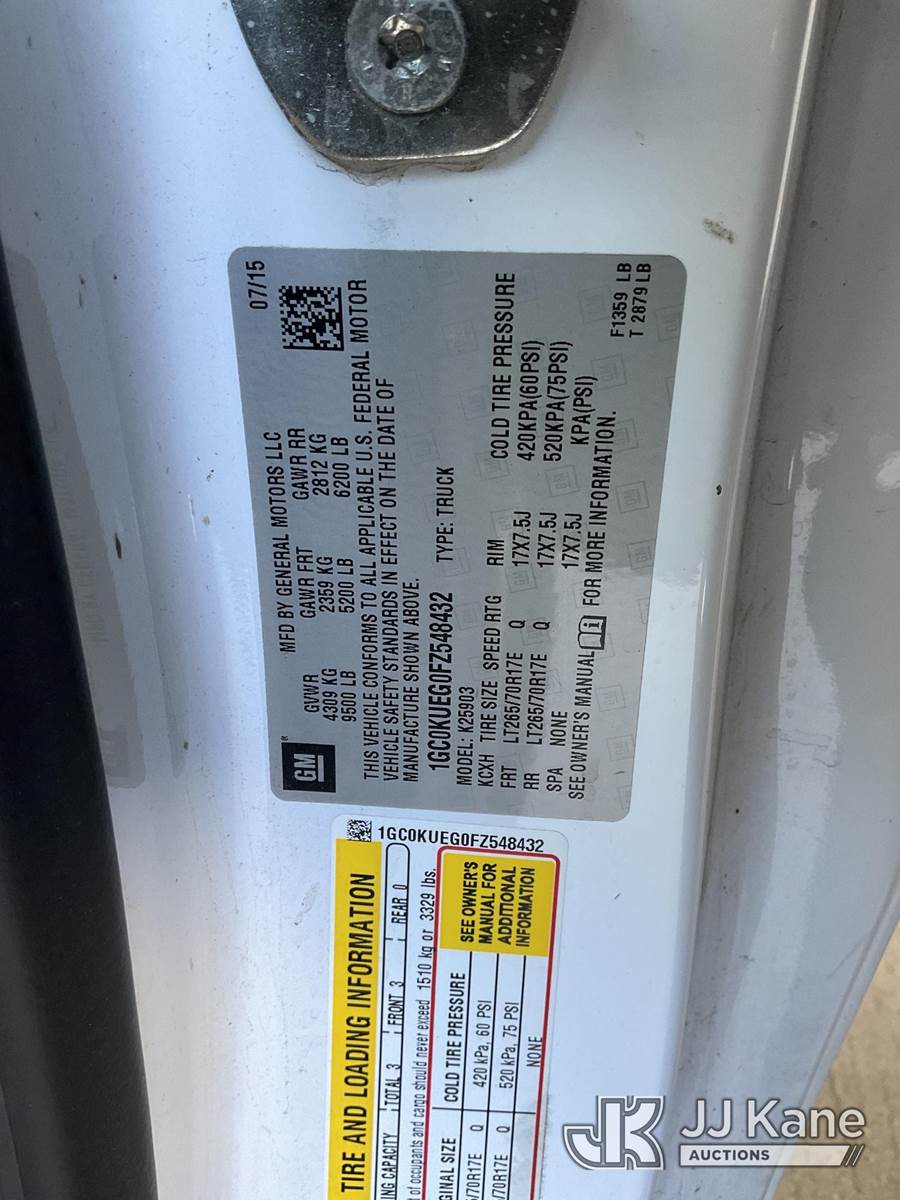 2015 Chevrolet Silverado 2500HD Pickup Truck, 8-cyl gas, 4wd, 6-Speed Automatic, A/C, with Tow package, (178,347 miles) (Runs & Moves) This is a Titled Item NOTE: This unit is being sold AS IS/WHERE IS via Timed Auction and is located in Jurupa Valley, CA. Inspection & preview days for this unit are the 2 business days prior to the first day of items closing for this auction, item is located at 4510 Muth Way Jurupa Valley, CA 92509 and hours of operations are 8a-4p. For pre-sale questions, please contact please contact Office Staff @ (310) 353-7140. Dealer License Number 45696. (Buyer is responsible for removal. Assistance by consignor or JJ Kane Auctions is not assured.)
