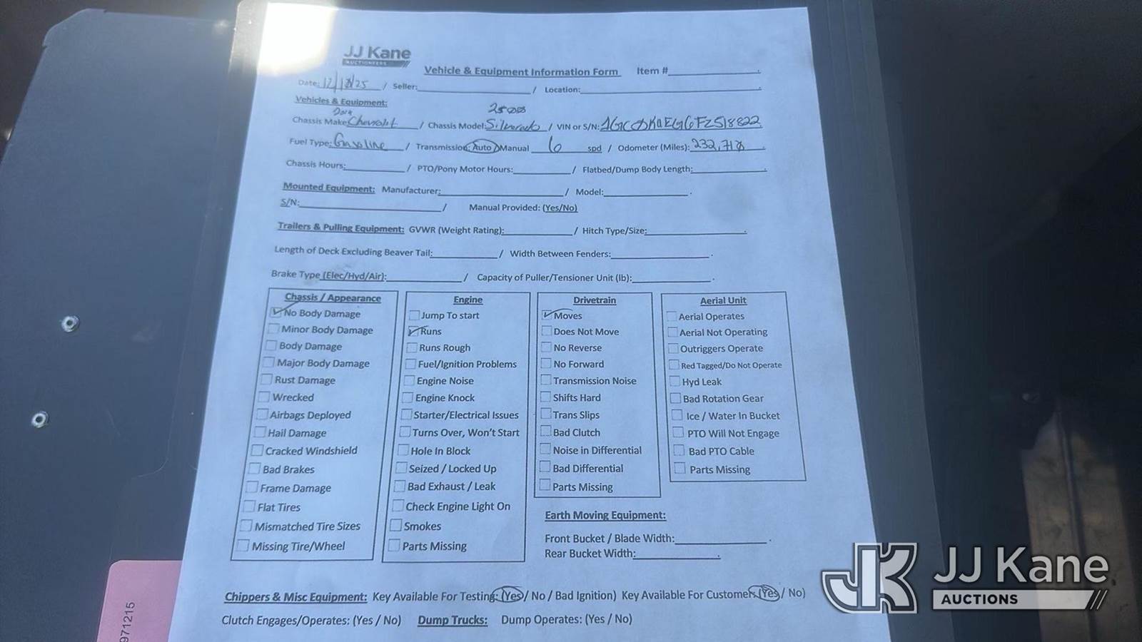 2015 Chevrolet Silverado 2500HD Work Truck Long Box 4WD Pickup Truck, 6.0L V8 OHV 16V FFV Auto, Gas, A/C, with service cap w/tool box, (232,710 miles) (Runs & Moves) This is a Titled Item NOTE: This unit is being sold AS IS/WHERE IS via Timed Auction and is located in Oklahoma City, OK. Inspection & preview days for this unit are by appointment only; please contact us at contact@jjkane.com or 84-Go-JJKane for more details. (Buyer is responsible for removal. Assistance by consignor or JJ Kane Auctions is not assured.)