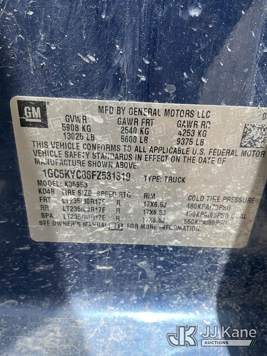 2015 Chevrolet Silverado 3500HD 4x4 Extended-Cab Service Truck, 6.6L V8 OHV 32V Diesel, Auto, A/C, with front winch, (147,180 miles) (Runs With Jumpstart, Moves, Has Major Body And Paint Damage) This is a Titled Item NOTE: This unit is being sold AS IS/WHERE IS via Timed Auction and is located in Ocala, FL. Inspection & preview days for this unit are by appointment only; please contact us at contact@jjkane.com or 84-Go-JJKane for more details. For more information & removal arrangements please contact Mike Lessard @ (352) 629-6677. (Buyer is responsible for removal. Assistance by consignor or JJ Kane Auctions is not assured.)