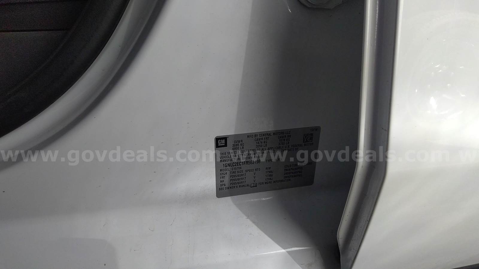 2015 Chevrolet Tahoe SPORT UTILITY 4-DR, 5.3L V8 OHV 16V. **GovDeals.com is the online auction platform where you can bid on and buy government surplus**