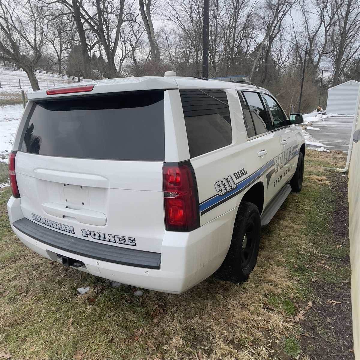 The 2015 Chevrolet Tahoe PPV was used as a patrol vehicle. It was taken out of service due to a bad motor. Prior to being taken out of service, the engine was run low on coolant for an unknown amount of time and was consuming a decent amount of oil between oil changes. The engine had a ticking noise, which turned out to be a collapsed lifer(s). Check engine light was flashing (misfires) and Stabilitrac error light was on. Must be towed off lot.
