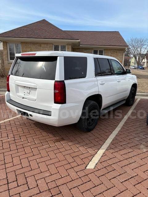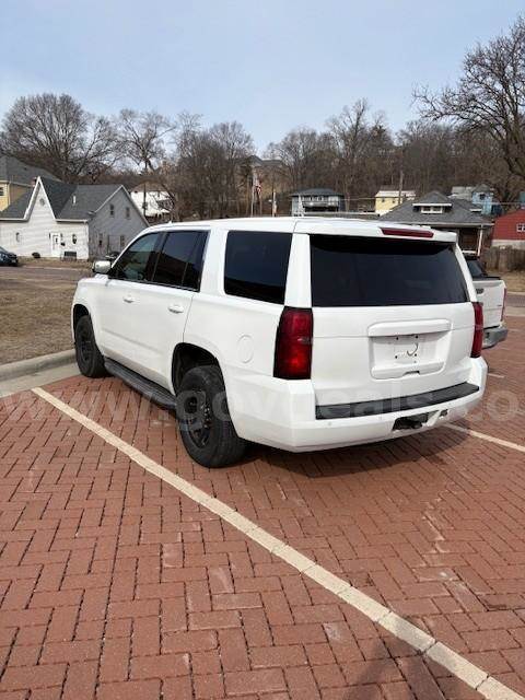 A 2015 Chevrolet Tahoe Sport Utility 4-Door with a 5.3L V8 OHV 16V. Vehicle starts, runs, and operates as it should. Selling due to replacement plan. Removed from service in the winter of 2026. Maintenance was performed every 3,000 miles, and maintenance records are available. Automatic transmission. The transmission is operable. Vehicle is 2-wheel drive in good condition. The exterior is white and shows minor scratches and dings consistent with normal use. Minor cosmetic damage to the left rear occurred in 2022. Tires are in good condition. The interior features black and gray cloth and vinyl seating. There is wear and tear on the front driver’s seat and minor damage to the dashboard due to previously installed equipment. The floors show normal wear. The vehicle includes a stock AM/FM radio, dual airbags, cruise control, tilt steering, remote mirrors, climate control, power steering, power windows, power door locks, and power seats. All decals and emergency equipment have been removed.