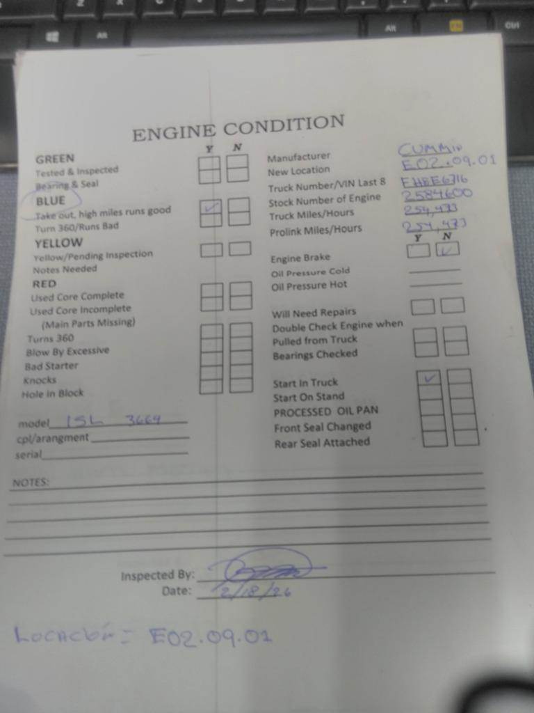 2015 Cummins ISL Engine for a Cummins ISL 3664