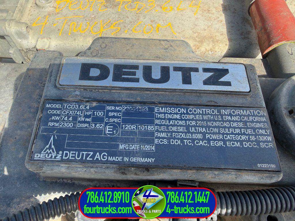 USED 2015 DEUTZ TCD 3.6 L4 ENGINE, 100HP, STOCK:0416261, ESN:22001393, COMPLETE, INSPECTED AND TESTED RUNNING GOOD ENGINE, ALSO MANY ENGINES IN STOCK
