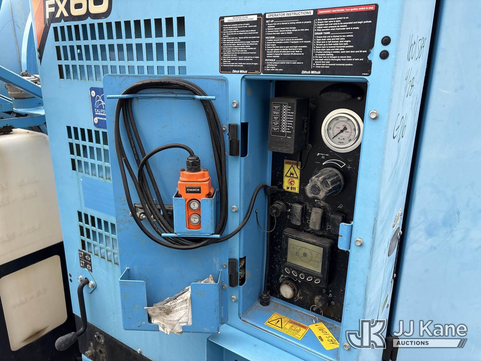 2015 Ditch Witch FX60 T/A Vacuum Excavation Trailer, 4-cyl, diesel, with 1200 gal cap, (Operates) (Reads 242 hours) This is a Titled Item NOTE: This unit is being sold AS IS/WHERE IS via Timed Auction and is located in Dixon, CA. Inspection & preview days for this unit are the 2 business days prior to the first day of items closing for this auction, item is located at 8668 Sparling Ln Dixon, CA 95620 and hours of operations are 8a-4p. For pre-sale questions, please contact JJ Kane Staff at (707) 678-8060 (dixon@jjkane.com). Dealer License Number 45696. (Buyer is responsible for removal. Assistance by consignor or JJ Kane Auctions is not assured.)