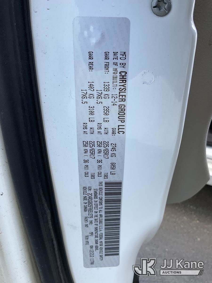 2015 Dodge Grand Caravan Mini Passenger Van, s/n 2C4RDGBG5FR651279, 6-cyl gas, 6-Speed Automatic, A/C, (141,615 miles) (Runs & Moves) This is a Titled Item NOTE: This unit is being sold AS IS/WHERE IS via Timed Auction and is located in Jurupa Valley, CA. Inspection & preview days for this unit are the 2 business days prior to the first day of items closing for this auction, item is located at 4510 Muth Way Jurupa Valley, CA 92509 and hours of operations are 8a-4p. For pre-sale questions, please contact please contact Office Staff @ (310) 353-7140. Dealer License Number 45696. (Buyer is responsible for removal. Assistance by consignor or JJ Kane Auctioneers is not assured.)