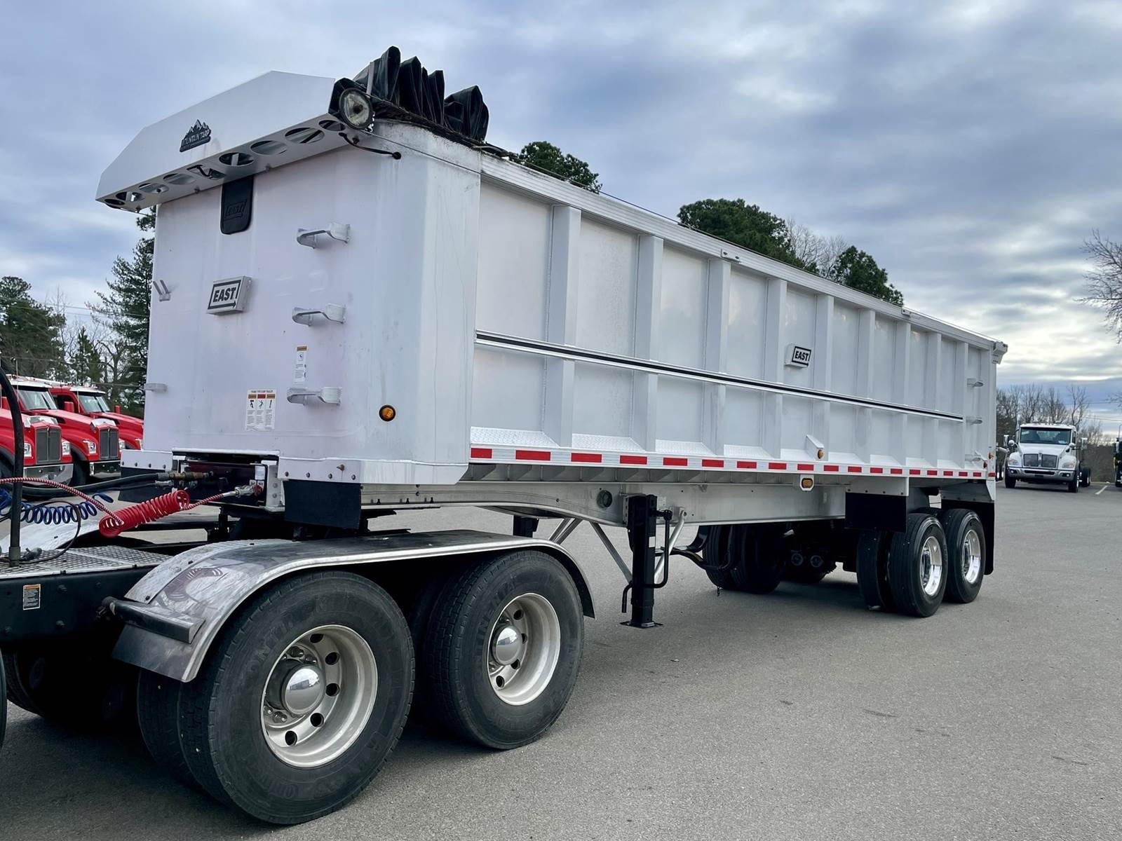 Tandem, 30' Aluminum End Dump, 64" Sides, Spring Suspension, Air Tailgate, Electric Tarp, Full Aluminum Frame, 2 Speed Landing Gear, 11R22.5 Tires on All Aluminum Wheels, 23,000 GAWR Each, 80,000 GVWR