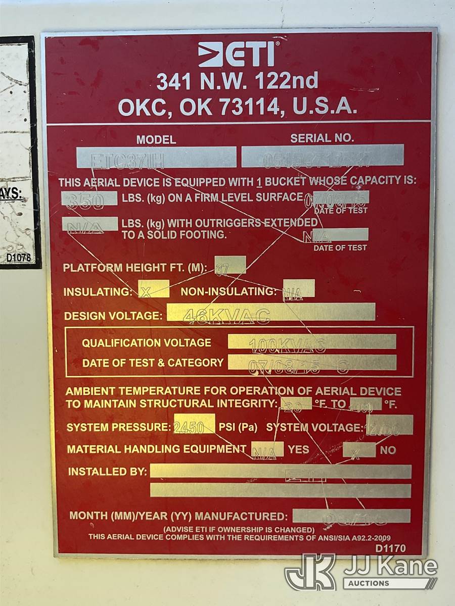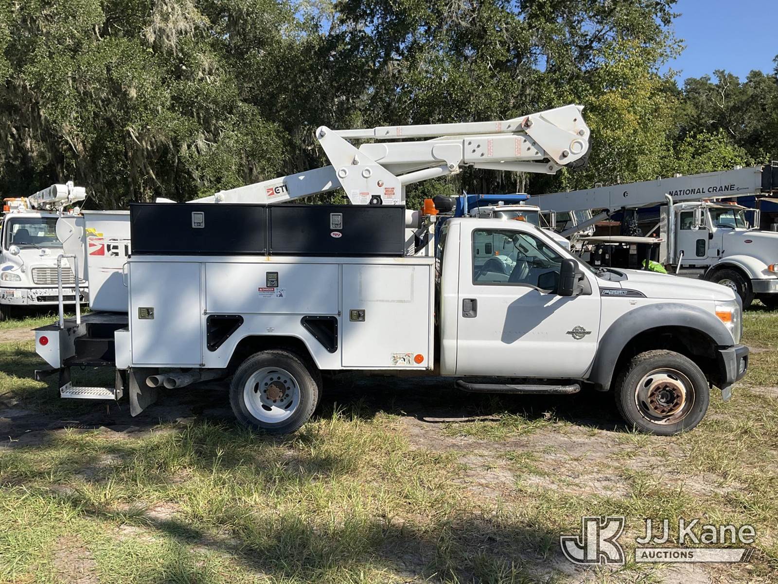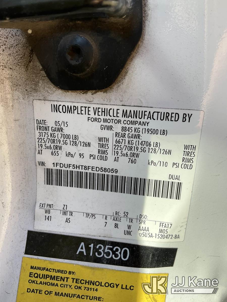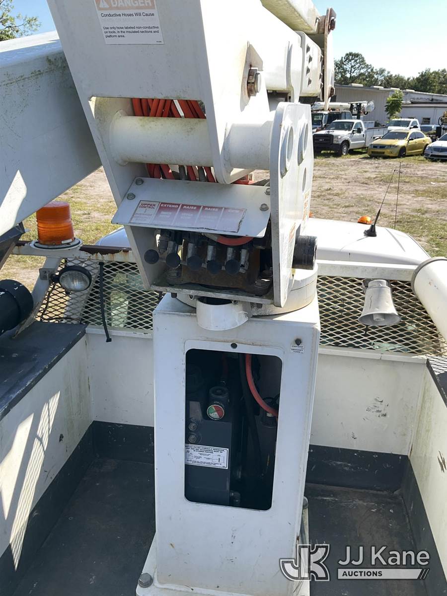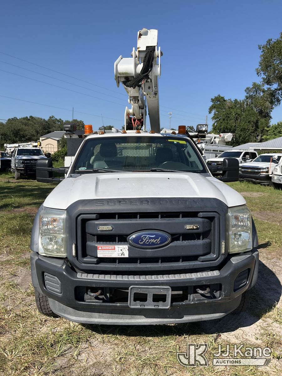 ETI ETC37-IH, 42 ft, Articulating & Telescopic Bucket Truck s/n 0515C711747, with single-man bucket, mounted behind cab on 2015 Ford F-550 4x4 Service Truck, 6.7L diesel, Auto, A/C, (233,698 miles) (Runs & Moves) (Upper Condition Unknown, Cracked Windshield, Check Engine Light On, ABS Light On, Paint/Body Damage) This is a Titled Item NOTE: This unit is being sold AS IS/WHERE IS via Timed Auction and is located in Ocala, FL. For more information & removal arrangements please contact Mike Lessard @ 352-629-6677. (Missing manuals, See Auction Company for Manufacturers Information to obtain manuals) (Buyer is responsible for removal. Assistance by consignor or JJ Kane Auctioneers is not assured.)