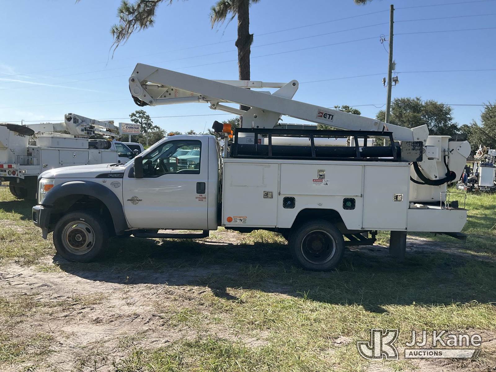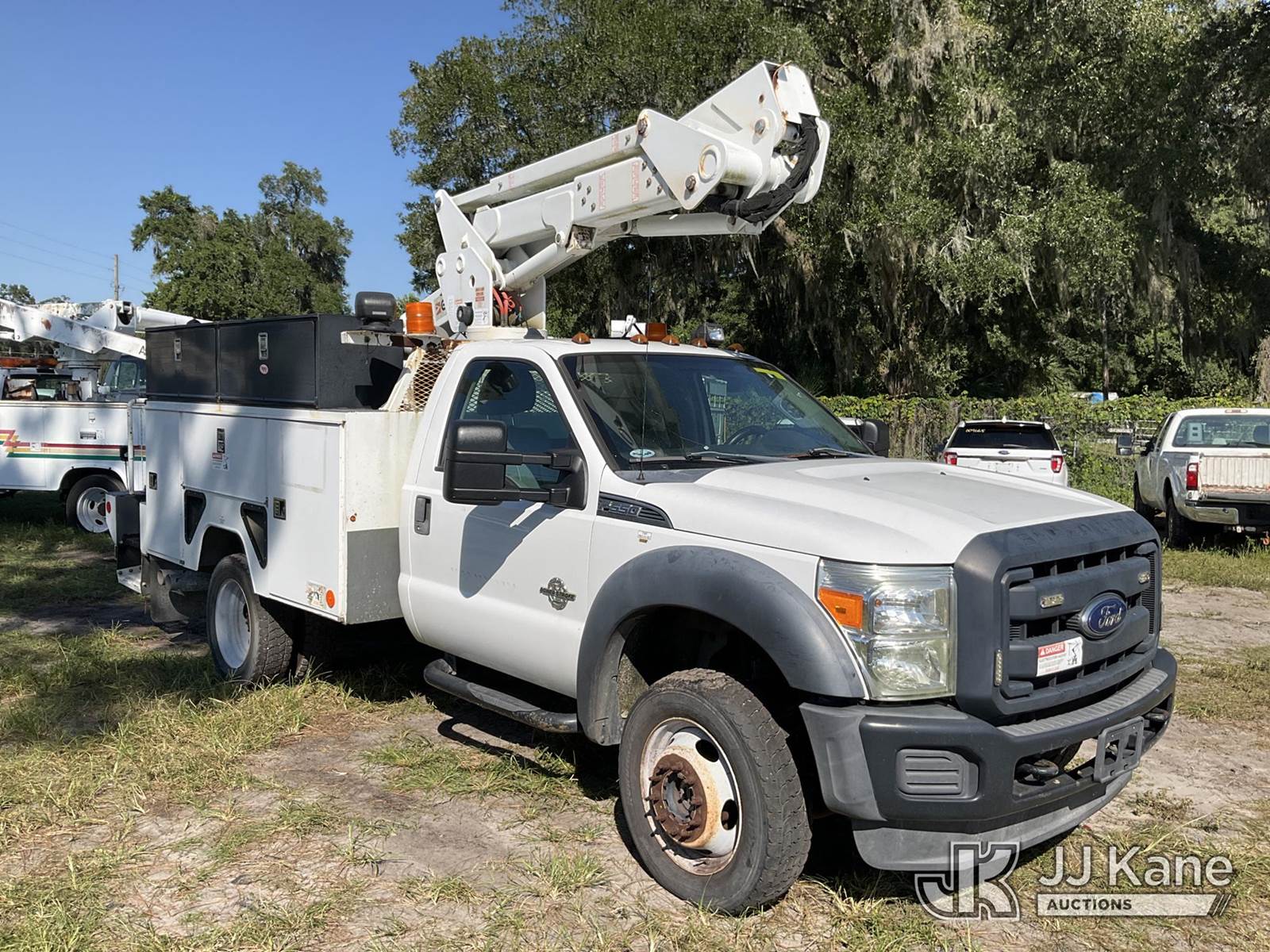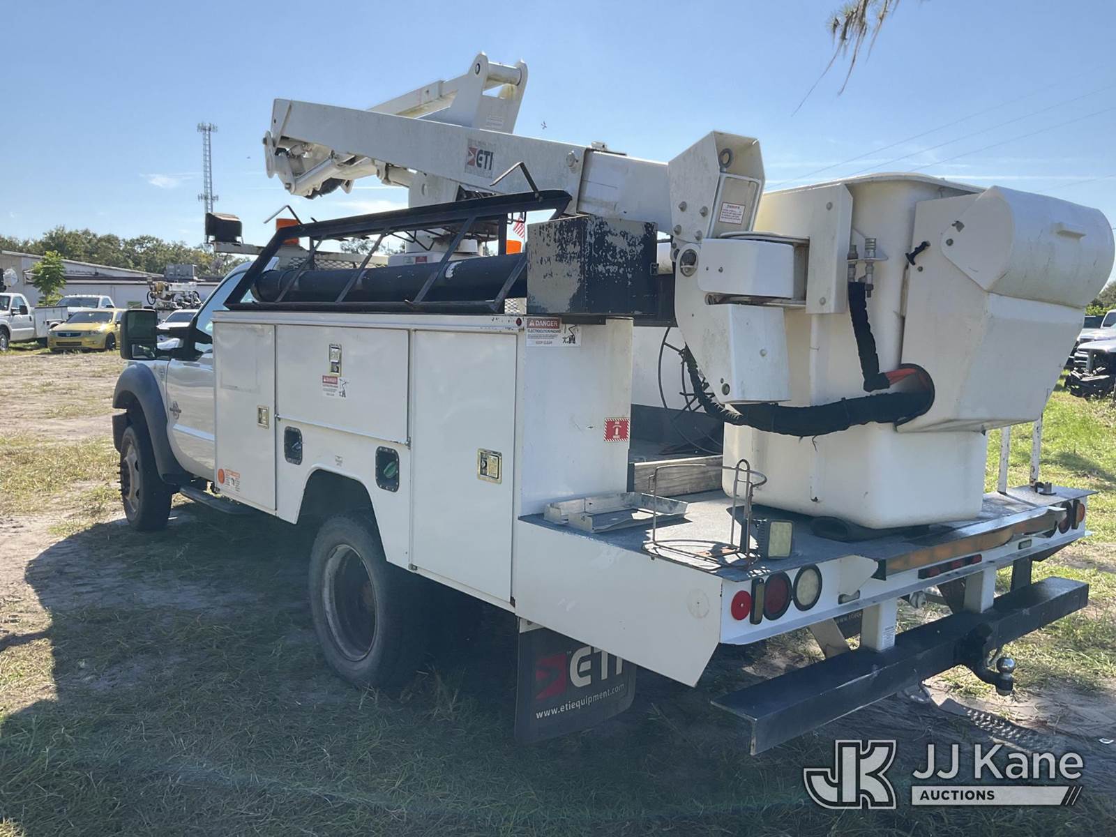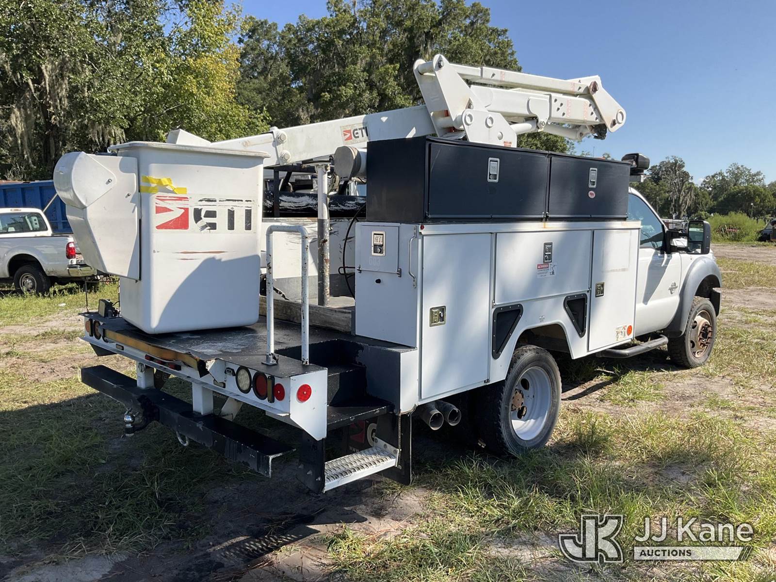 ETI ETC37-IH, 42 ft, Articulating & Telescopic Bucket Truck s/n 0515C711747, with single-man bucket, mounted behind cab on 2015 Ford F-550 4x4 Service Truck, 6.7L diesel, Auto, A/C, (233,698 miles) (Runs & Moves) (Upper Condition Unknown, Cracked Windshield, Check Engine Light On, ABS Light On, Paint/Body Damage) This is a Titled Item NOTE: This unit is being sold AS IS/WHERE IS via Timed Auction and is located in Ocala, FL. For more information & removal arrangements please contact Mike Lessard @ 352-629-6677. (Missing manuals, See Auction Company for Manufacturers Information to obtain manuals) (Buyer is responsible for removal. Assistance by consignor or JJ Kane Auctioneers is not assured.)